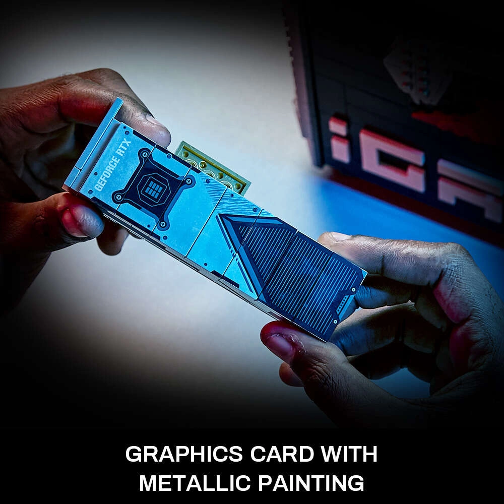 Ανακαλύψτε ένα πρωτότυπο σετ κατασκευής που αναπαριστά πιστά ένα σύγχρονο gaming desktop. Κάθε αρθρωτό μέρος – από την κάρτα γραφικών έως το τροφοδοτικό και τη βάση για SSD μέχρι τη μητρική πλακέτα και τις μνήμες DDR – συναρμολογείται ξεχωριστά, ώστε να απολαύσετε ρεαλιστική αίσθηση “upgrade” υπολογιστή. Η προσεγμένη pad printing εκτύπωση στα κομμάτια εξασφαλίζει μακροχρόνια όμορφη εμφάνιση χωρίς ανάγκη για αυτοκόλλητες ετικέτες.