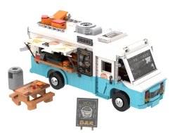 Ανακαλύψτε τη μαγεία των δρόμων γεμάτων αρώματα και φώτα με το επιμελημένο μοντέλο του ρετρό food truck. Η οροφή ανοίγει εύκολα και αποκαλύπτει μια αυθεντική κουζίνα με εστία, φριτέζα, φούρνο ψησίματος και σκεύη. Χάρη στις εκτυπωμένες λεπτομέρειες, η εμφάνιση παραμένει καθαρή και εντυπωσιακή για μεγάλο χρονικό διάστημα.