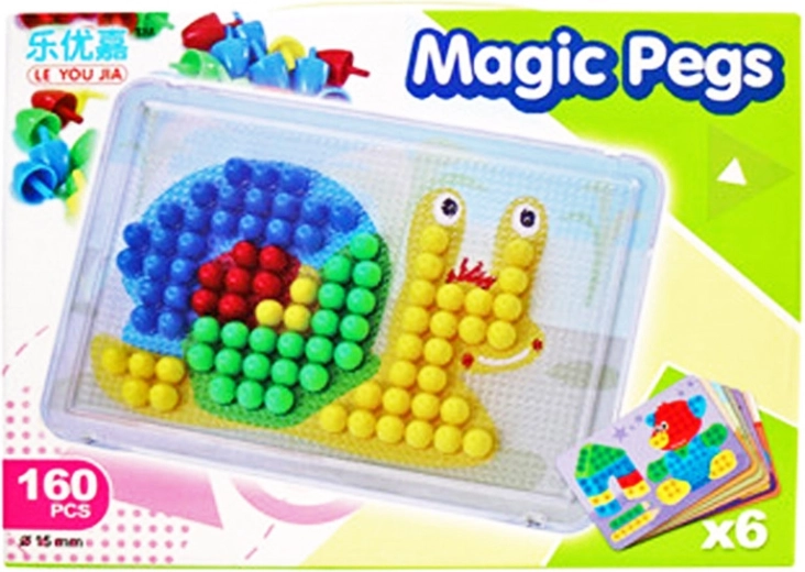 Αυτό το πολύχρωμο μωσαϊκό είναι ιδανική επιλογή για τις πρώτες δημιουργικές κατασκευές. Τα παιδιά μπορούν να συνθέτουν εικόνες σύμφωνα με τα πρότυπα ή να δημιουργούν τα δικά τους μοτίβα, αναπτύσσοντας έτσι δημιουργικότητα, συντονισμό ματιού–χεριού και λεπτή κινητικότητα. Χάρη στα μεγαλύτερα καρφάκια διαμέτρου 15 mm, η εργασία είναι εύκολη ακόμη και για μικρότερα παιδιά.