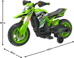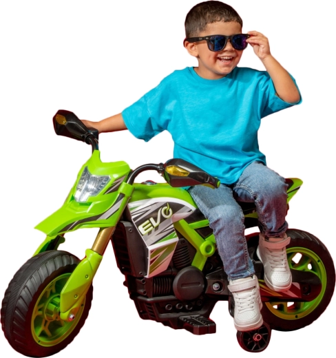Ανακαλύψτε τον σπορ σχεδιασμό και τις ρεαλιστικές λεπτομέρειες της μοτοσικλέτας EVO Venom που ενθουσιάζουν παιδιά και γονείς. Το στιλ, εμπνευσμένο από πραγματικές μοτοσικλέτες, ο ρεαλιστικός προβολέας και η στιβαρή πλαστική κατασκευή ενισχύουν την αίσθηση σιγουριάς στη σέλα. Την οδήγηση συμπληρώνουν τα φώτα που ανάβουν κατά την κίνηση και ο εύκολος χειρισμός προς τα εμπρός μέσω κουμπιού στο τιμόνι.