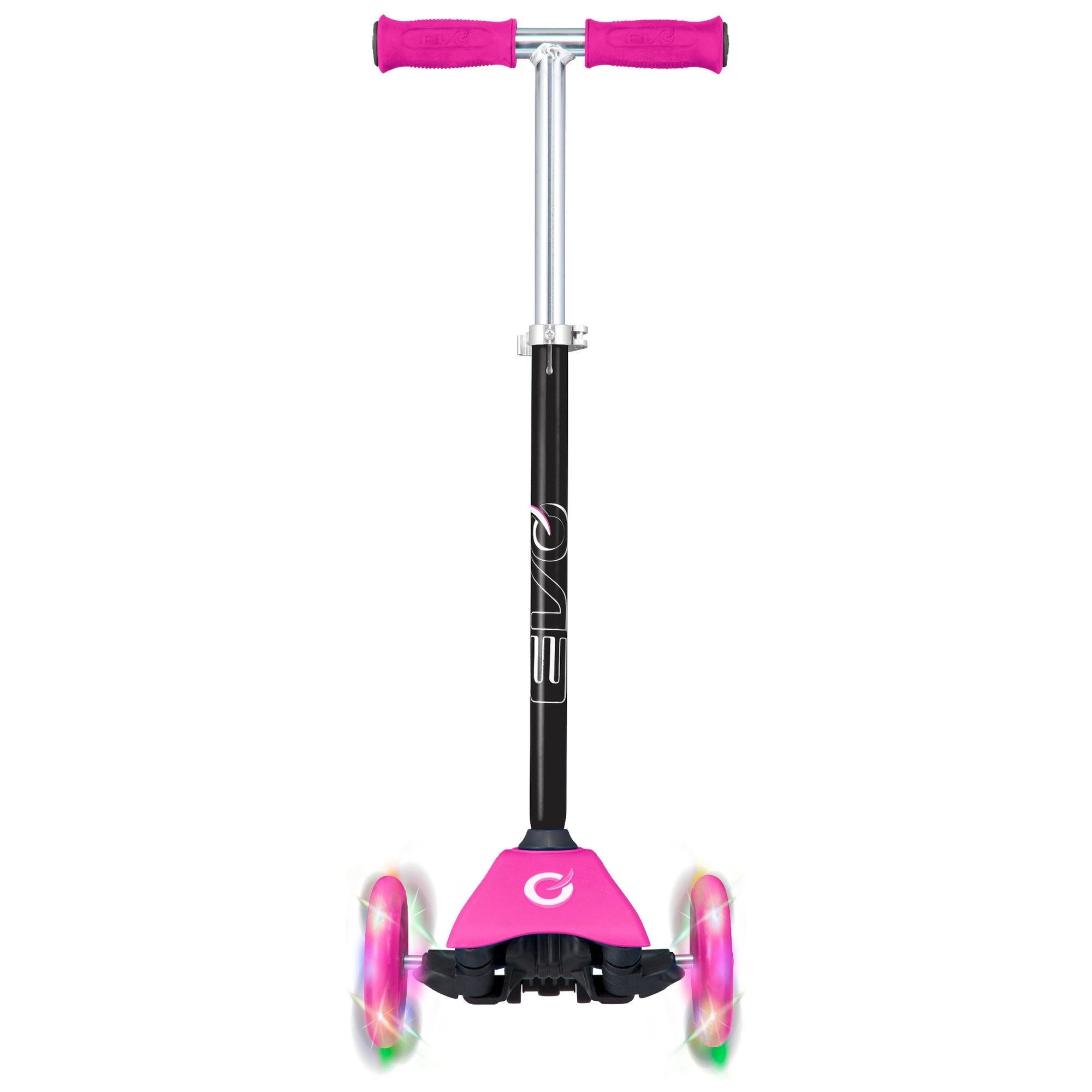 Ελαφρύ και σταθερό παιδικό πατίνι EVO Mini Cruiser με τρεις τροχούς για εύκολη εκμάθηση ισορροπίας. Προσφέρει φωτιζόμενους LED τροχούς, τιμόνι κλίσης (ισορροπίας), τιμόνι ρυθμιζόμενου ύψους και πίσω φρένο ποδιού. Η ροζ εμφάνιση εντυπωσιάζει τους μικρούς αναβάτες, ενώ η ήσυχη κύλιση και το φαρδύ πάτημα εξασφαλίζουν άνεση και ασφάλεια.