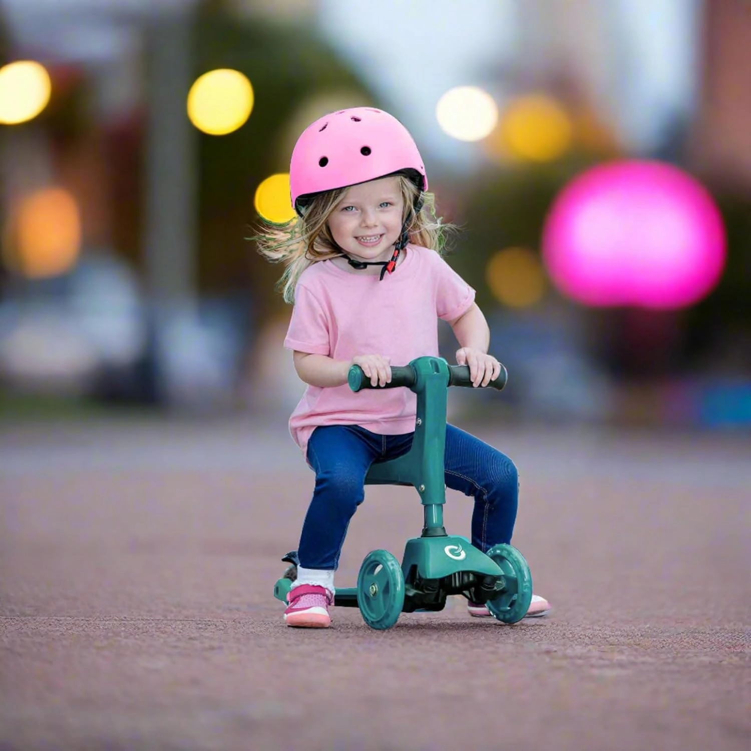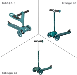 Αυτό το έξυπνο τρίκυκλο πατίνι 2-σε-1 μετατρέπεται σε δευτερόλεπτα από ποδαράτο με κάθισμα σε κλασικό πατίνι. Με το ρυθμιζόμενο τιμόνι (περίπου 40 cm σε λειτουργία ποδαράτου και 62–72 cm σε λειτουργία πατινιού) μεγαλώνει μαζί με το παιδί και προσφέρει σιγουριά στις πρώτες βόλτες και αργότερα σε πιο ζωηρό σπρώξιμο.