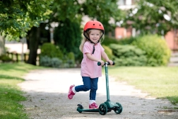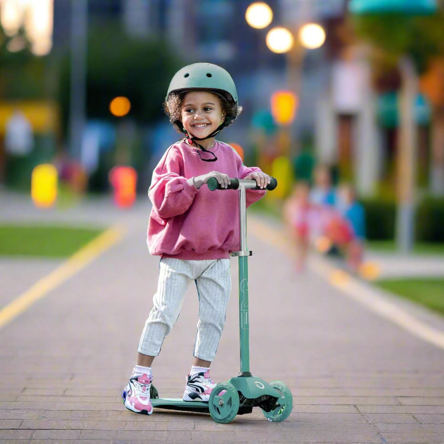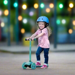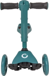 Σταθερότητα και ασφάλεια εξασφαλίζουν οι δύο μεγάλοι μπροστινοί τροχοί και ο μικρότερος πίσω τροχός με φρένο ποδιού. Την αθόρυβη και ομαλή κύλιση υποστηρίζουν τα ρουλεμάν ABEC-5, ενώ οι λαστιχένιες λαβές TPE προσφέρουν σταθερό κράτημα χωρίς γλίστρημα. Το χαμηλό βάρος 2,75 kg διευκολύνει τη μεταφορά και την καθημερινή χρήση.