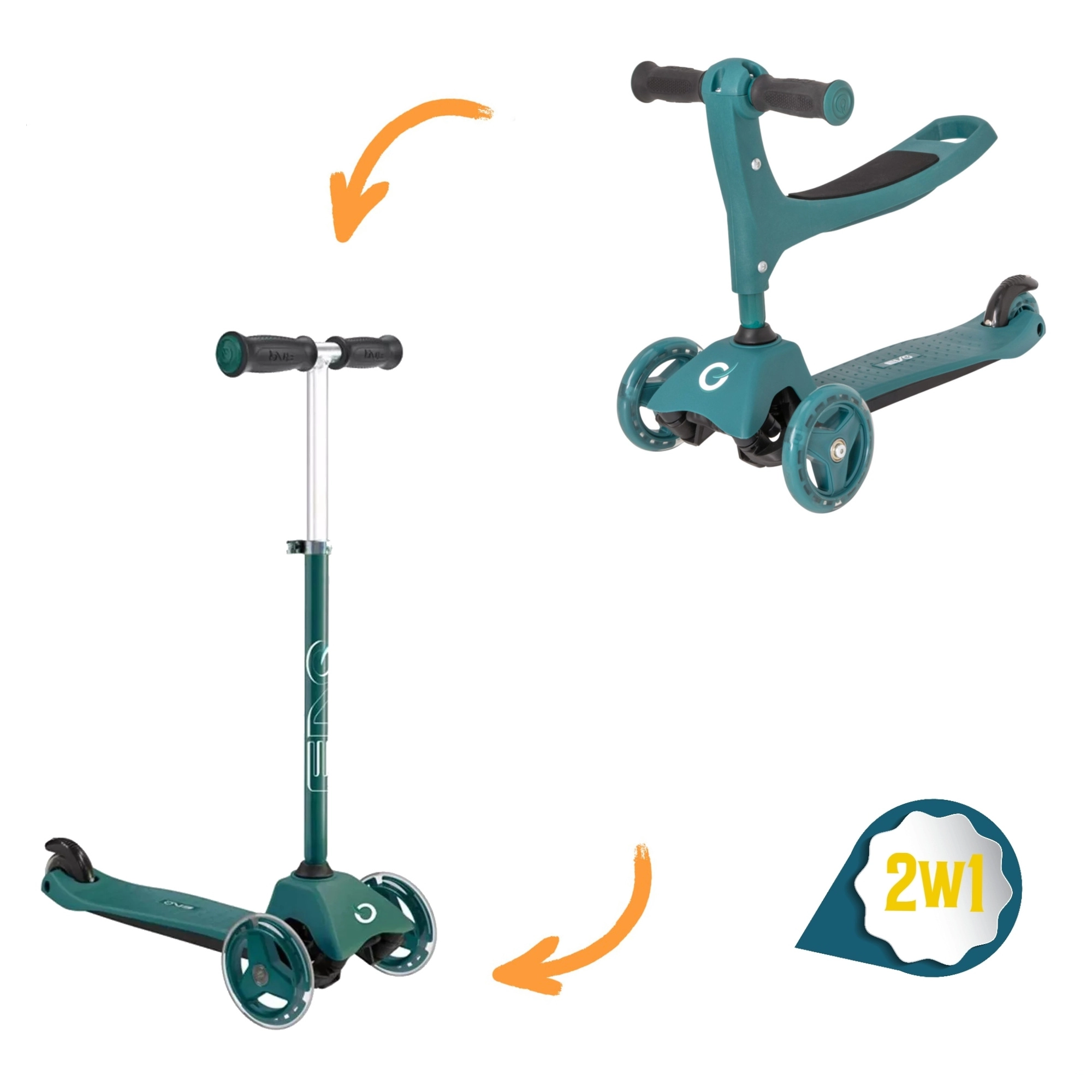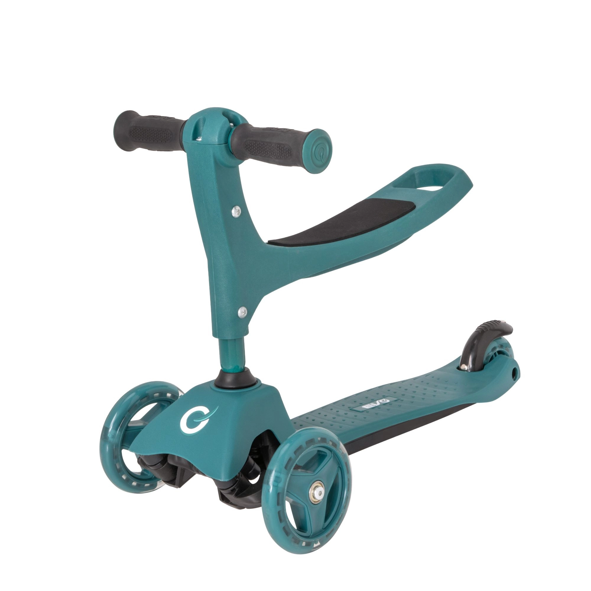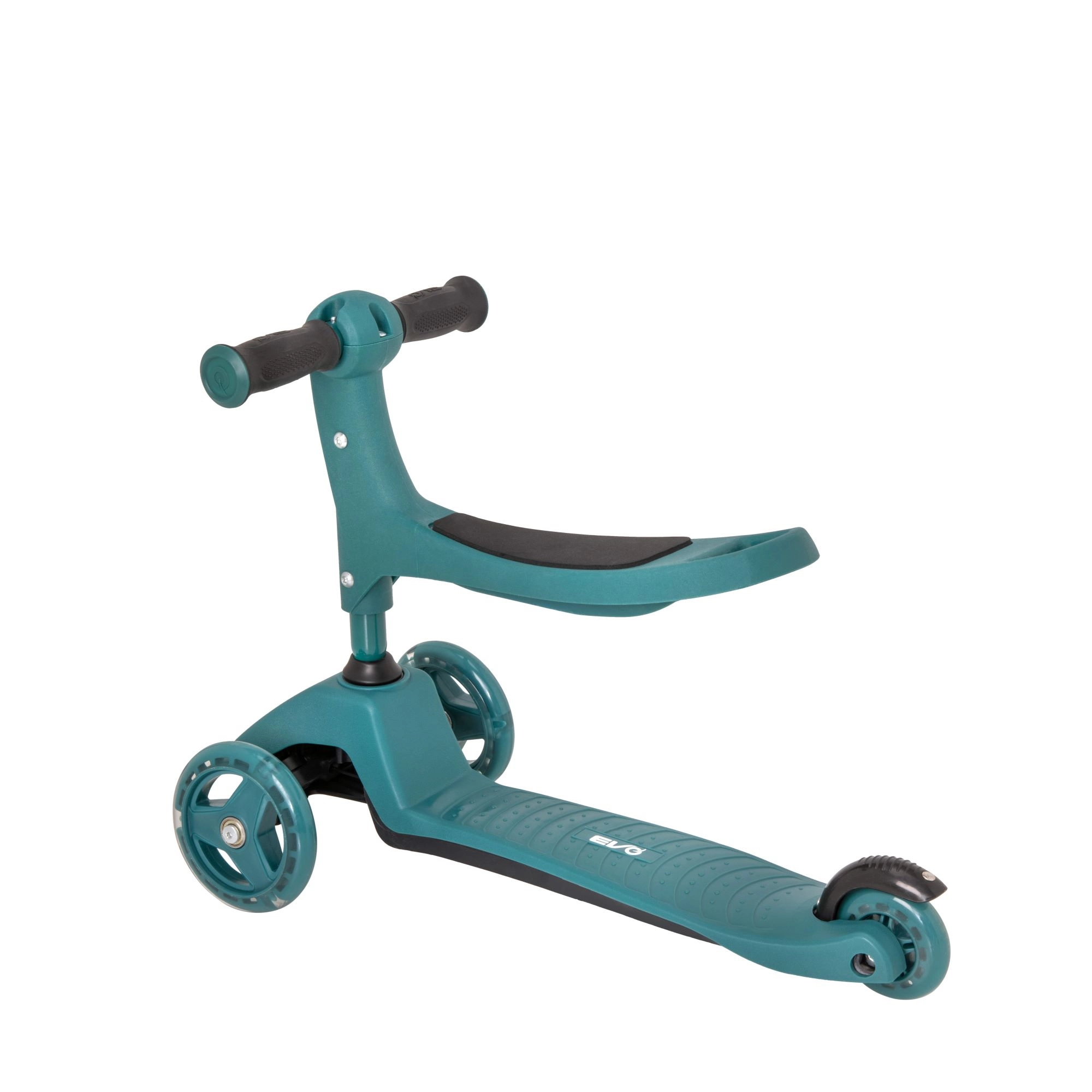 Προσφέρετε στα παιδιά σταθερή και διασκεδαστική βόλτα με το πατίνι 2-σε-1 της EVO – συνδυάζει ποδαράτο με κάθισμα και πατίνι σε ένα. Χάρη στους τρεις τροχούς, το φαρδύ πάτημα και το ρυθμιζόμενο ύψος τιμονιού υποστηρίζει ισορροπία και συντονισμό από 1 έτους. Τα διπλά μπροστινά τροχάκια, τα αθόρυβα ρουλεμάν ABEC-5 και το φρένο ποδιού στο πίσω λασπωτήρα εξασφαλίζουν ασφαλή και ομαλή κίνηση.