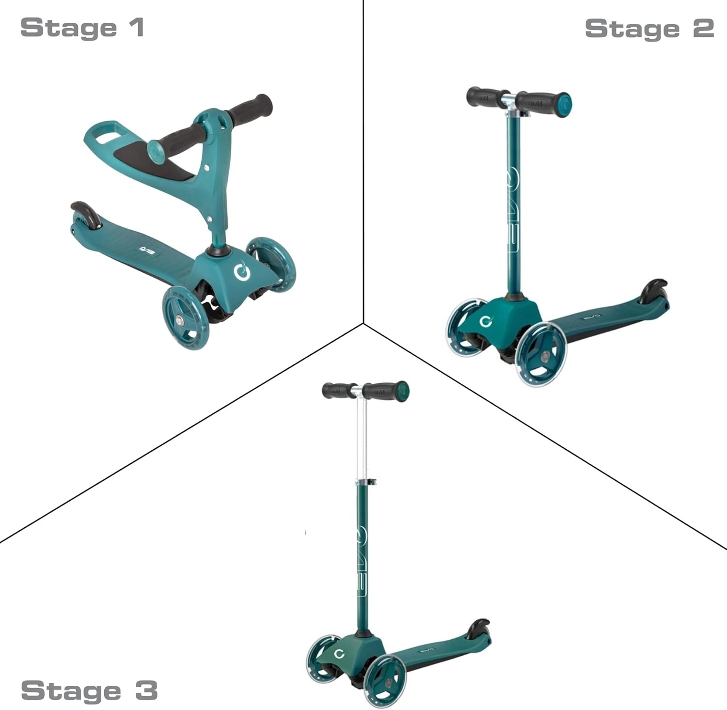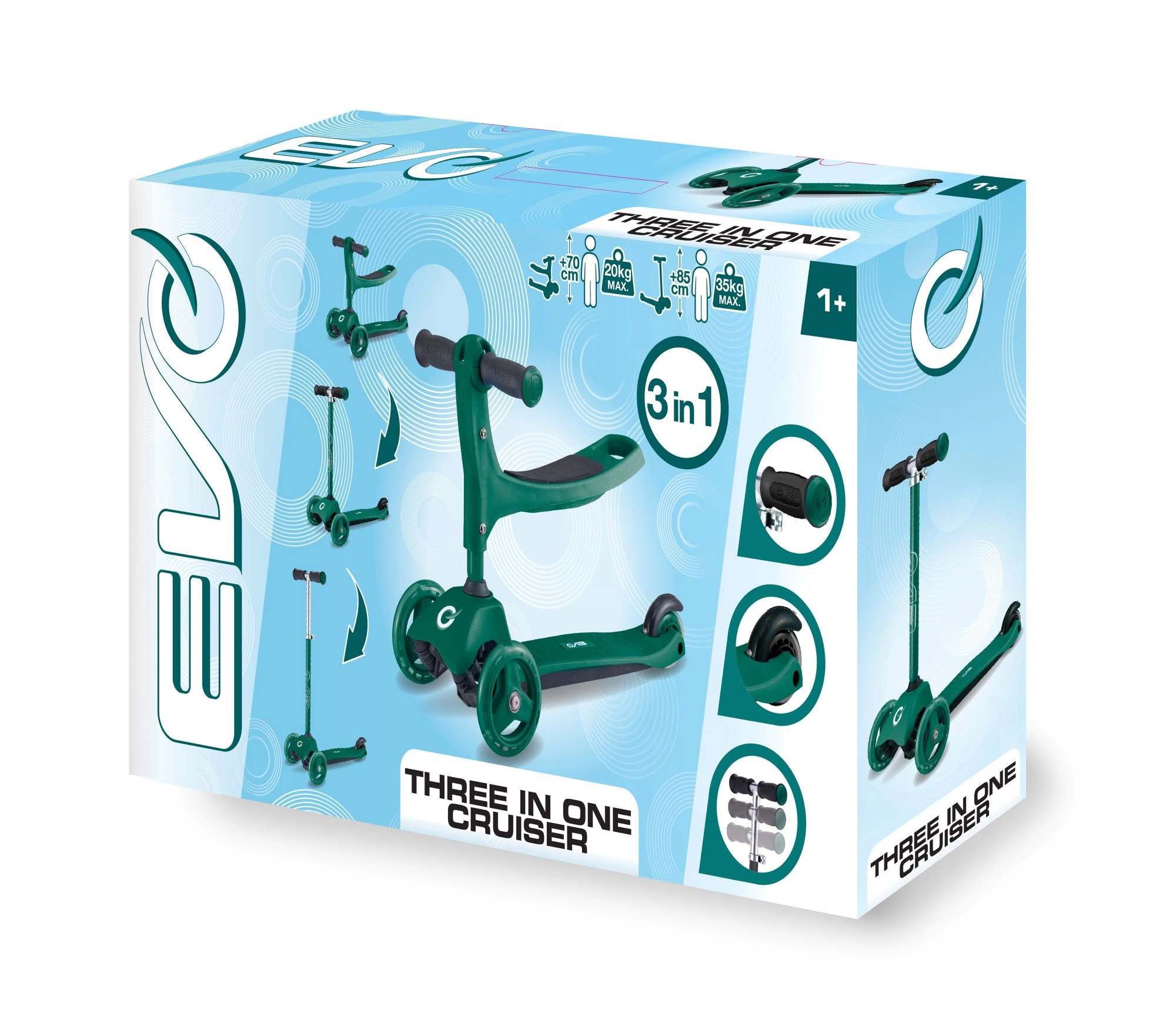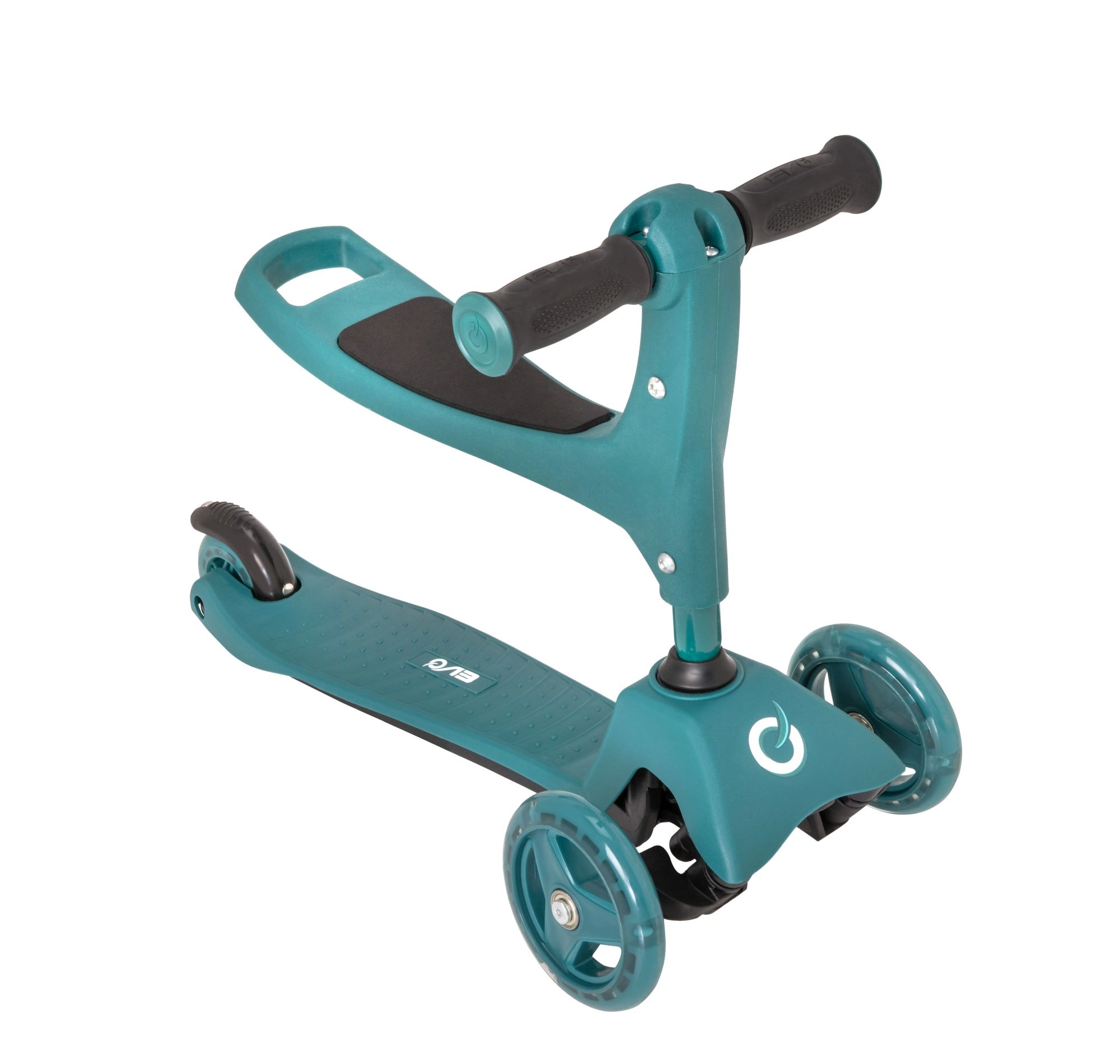 Προσφέρετε στα παιδιά σταθερή και διασκεδαστική βόλτα με το πατίνι 2-σε-1 της EVO – συνδυάζει ποδαράτο με κάθισμα και πατίνι σε ένα. Χάρη στους τρεις τροχούς, το φαρδύ πάτημα και το ρυθμιζόμενο ύψος τιμονιού υποστηρίζει ισορροπία και συντονισμό από 1 έτους. Τα διπλά μπροστινά τροχάκια, τα αθόρυβα ρουλεμάν ABEC-5 και το φρένο ποδιού στο πίσω λασπωτήρα εξασφαλίζουν ασφαλή και ομαλή κίνηση.