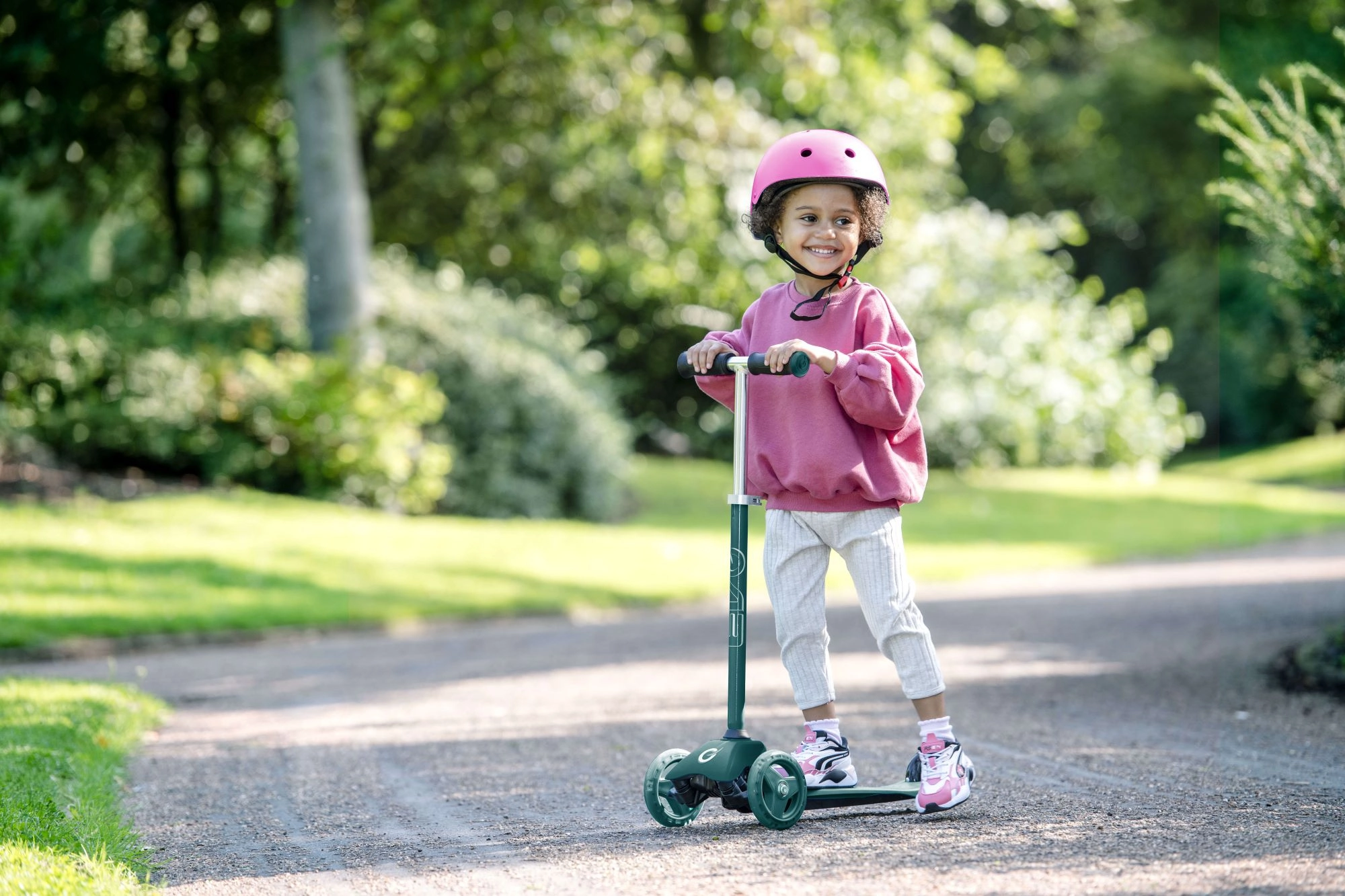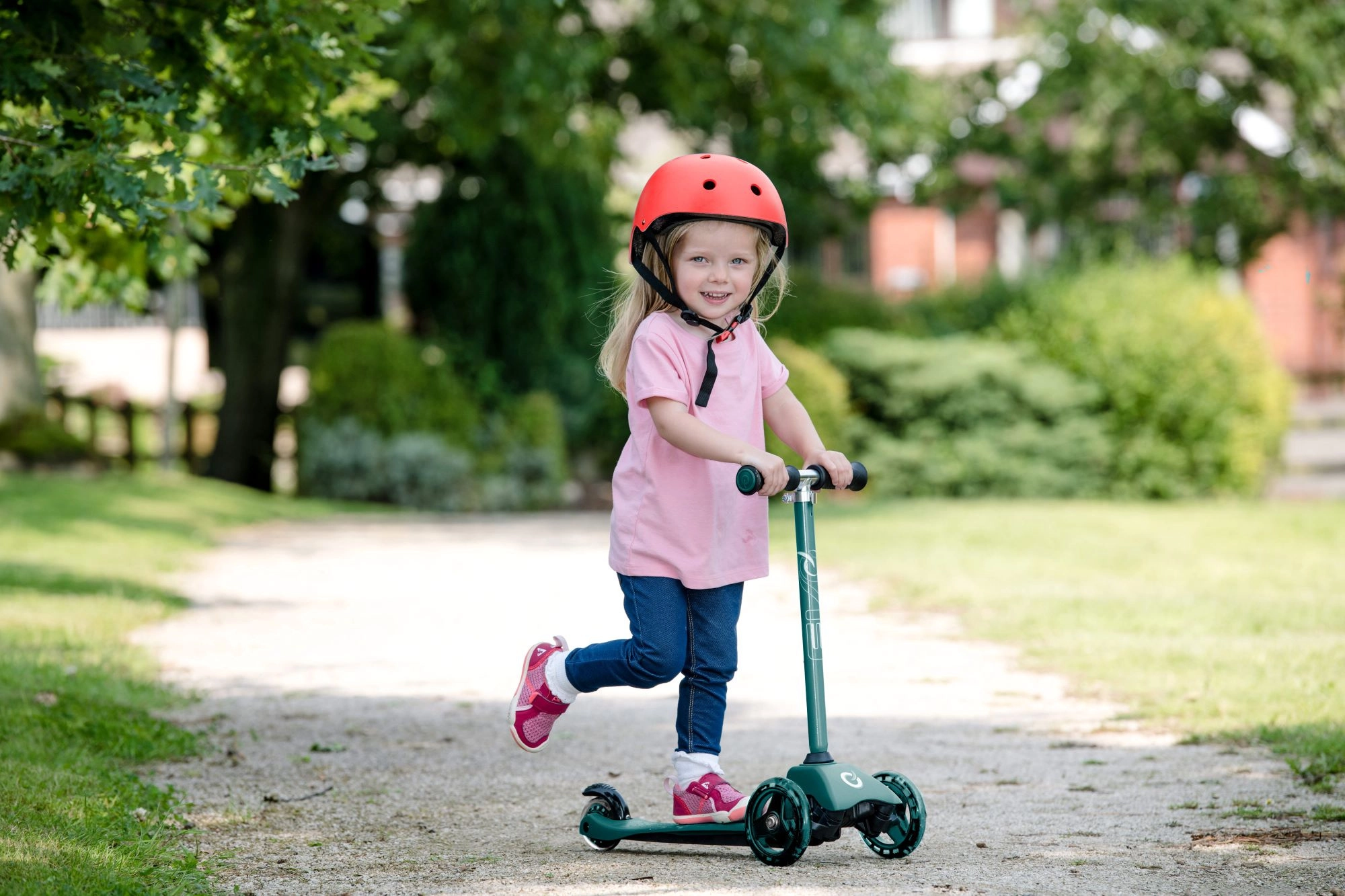 Δύο μεγαλύτεροι μπροστινοί τροχοί κρατούν την πορεία και αυξάνουν τη σιγουριά στο σπρώξιμο. Ο πίσω λασπωτήρας λειτουργεί ως αξιόπιστο φρένο ποδιού για ασφαλές σταμάτημα.