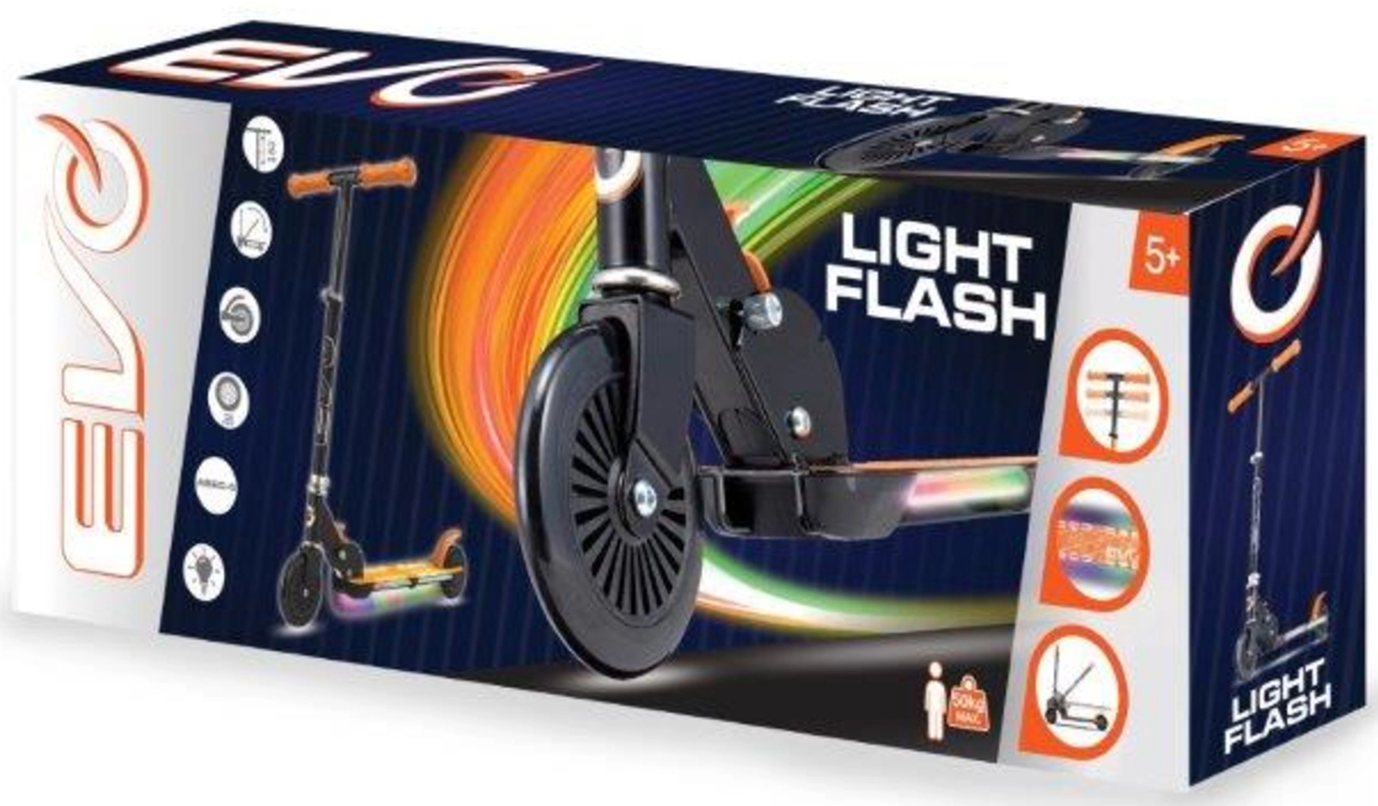 Το πατίνι EVO Light Flash είναι εξαιρετική επιλογή για μικρούς αναβάτες που θέλουν στυλ, ασφάλεια και διασκέδαση. Η πλατφόρμα με πολύχρωμο LED φωτισμό ενισχύει την ορατότητα και χαρίζει εντυπωσιακό εφέ, ενώ η ελαφριά αναδιπλούμενη κατασκευή διευκολύνει την αποθήκευση και τη μεταφορά. Το ρυθμιζόμενο ύψος τιμονιού (περίπου 72–82 cm) εξασφαλίζει ιδανική εργονομία για διαφορετικά ύψη παιδιών.