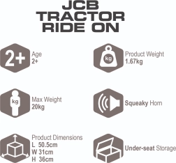 Το ποδηλατάκι ισορροπίας JCB Fastrac θα ενθουσιάσει τους μικρούς φίλους των κατασκευαστικών μηχανημάτων με την ρεαλιστική του εμφάνιση και την ανθεκτική κατασκευή. Χάρη στην κίνηση με τα πόδια, τα παιδιά εξασκούν ισορροπία και συντονισμό, ενώ οι φαρδιές ρόδες και η σταθερή κατασκευή εξασφαλίζουν ασφαλή οδήγηση. Το πρακτικό ντουλαπάκι κάτω από το κάθισμα και η κόρνα κάνουν τη βόλτα ακόμη πιο διασκεδαστική.