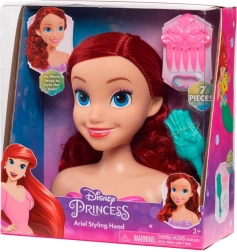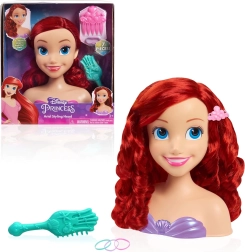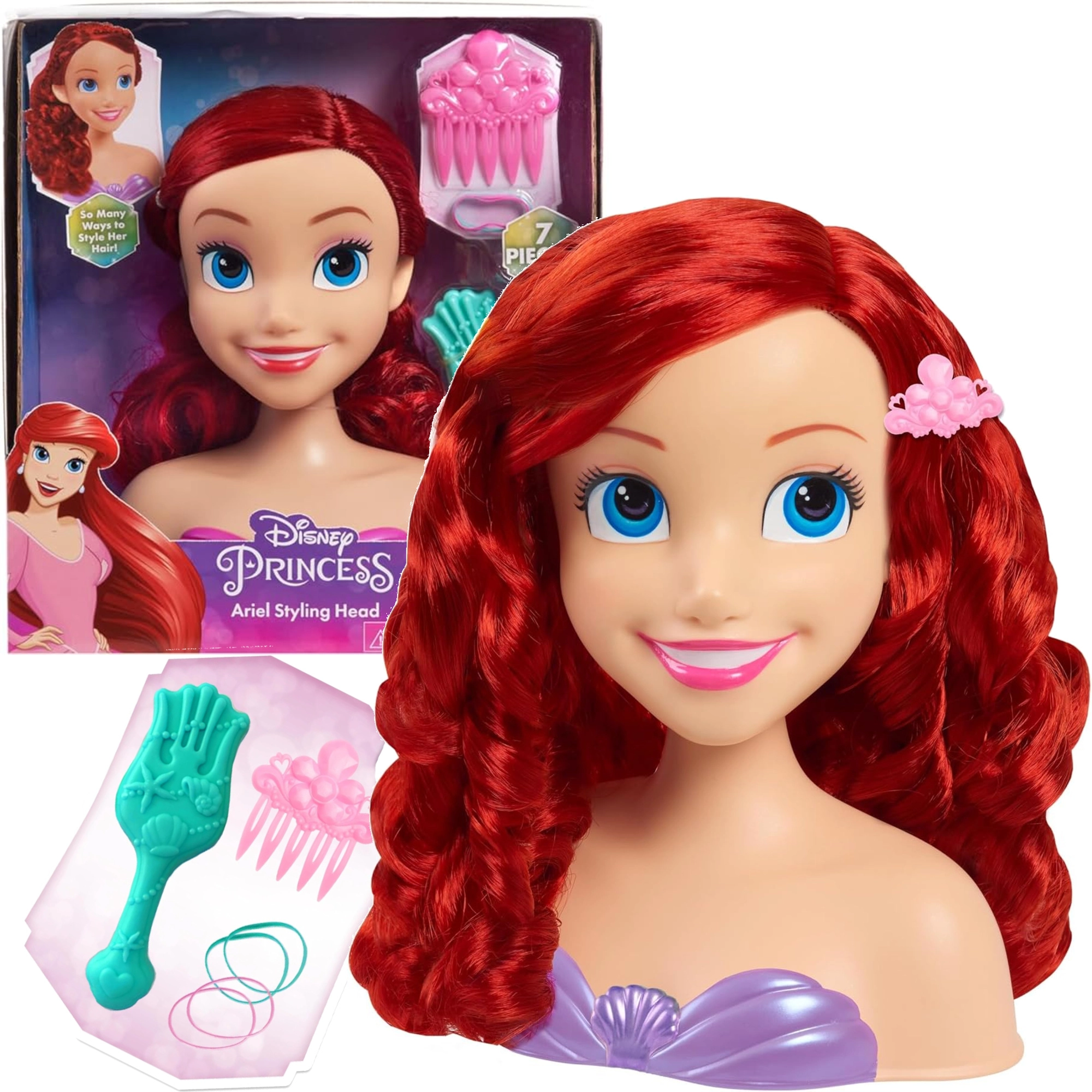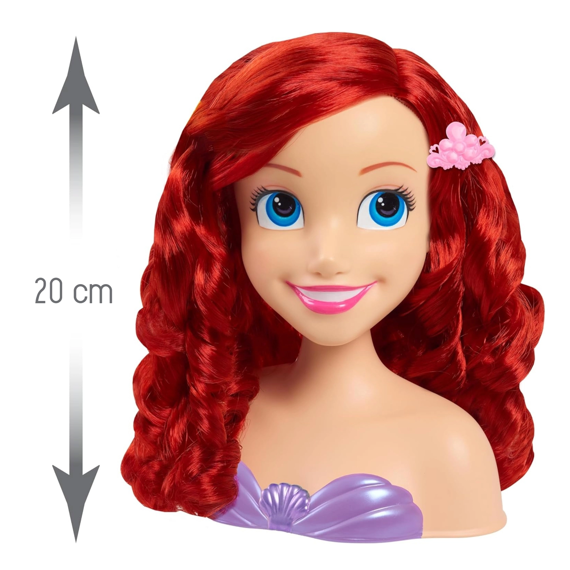 Το κεφάλι για χτένισμα DISNEY Πριγκίπισσα Άριελ αποτυπώνει πιστά τη δημοφιλή γοργόνα με γαλάζια μάτια και μακριά, σγουρά κόκκινα μαλλιά. Το σταθερό πλαστικό μπούστο με μοβ επάνω μέρος σε σχήμα κοχυλιού διευκολύνει το styling και κρατάει το κεφάλι σταθερό, ώστε τα παιδιά να απολαύσουν στο έπακρο το κομμωτικό παιχνίδι.