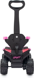 Οι γονείς θα εκτιμήσουν την ψηλή οδηγική λαβή για εύκολο χειρισμό και επίβλεψη, ενώ τα παιδιά απολαμβάνουν την άνεση του εργονομικού καθίσματος από οικολογικό δέρμα. Η ποιοτική κατασκευή και η πιστοποίηση σύμφωνα με τα πρότυπα της ΕΕ διασφαλίζουν ασφαλή χρήση.