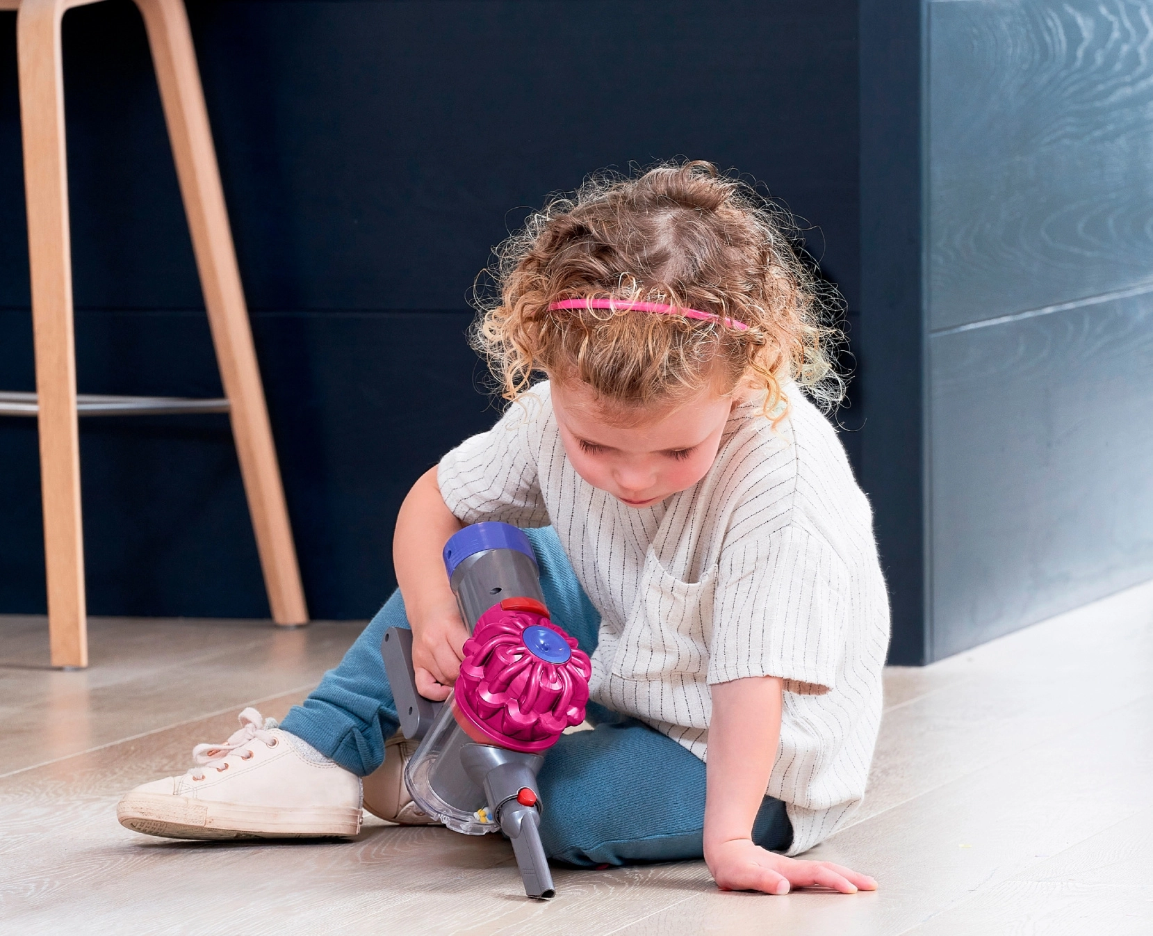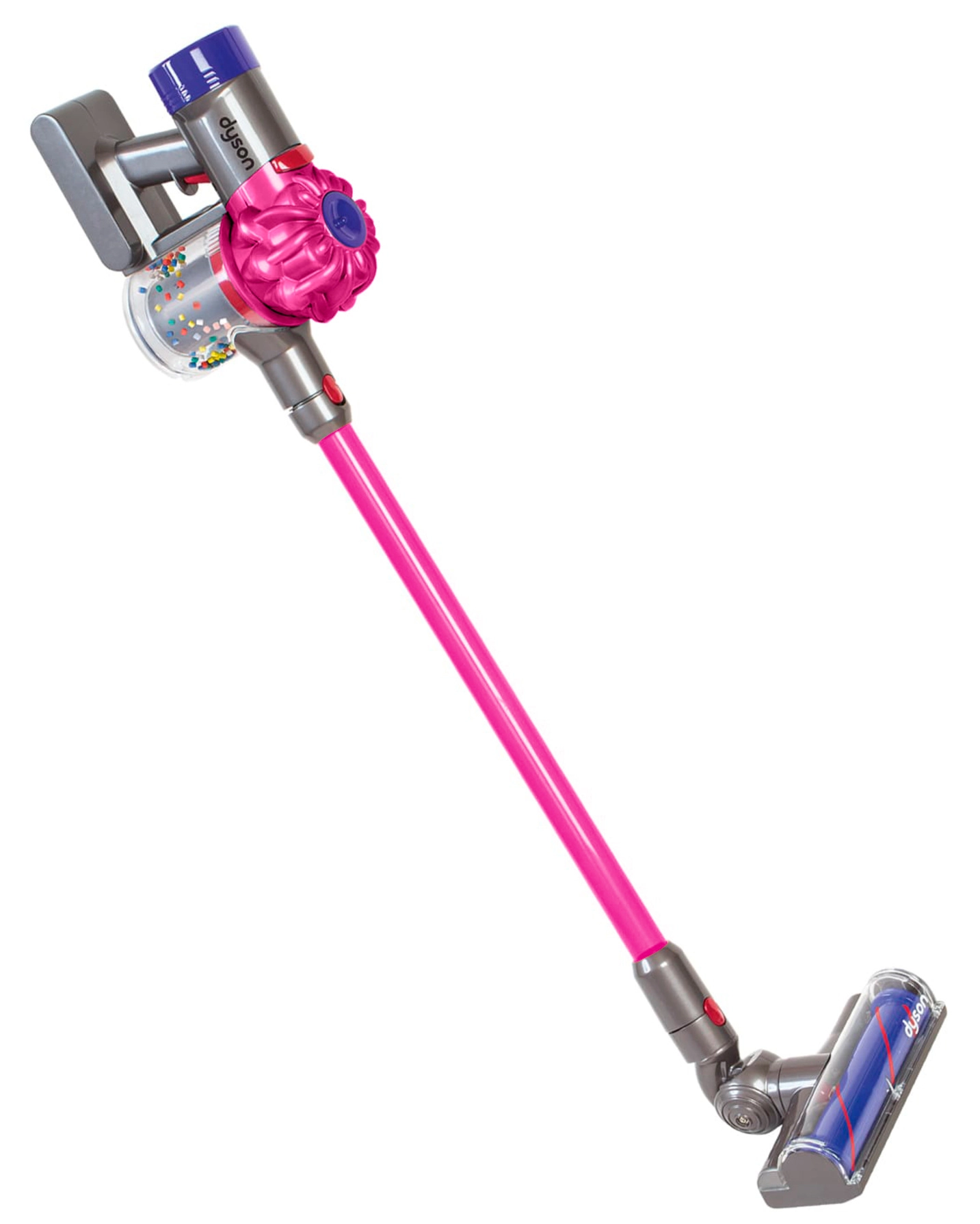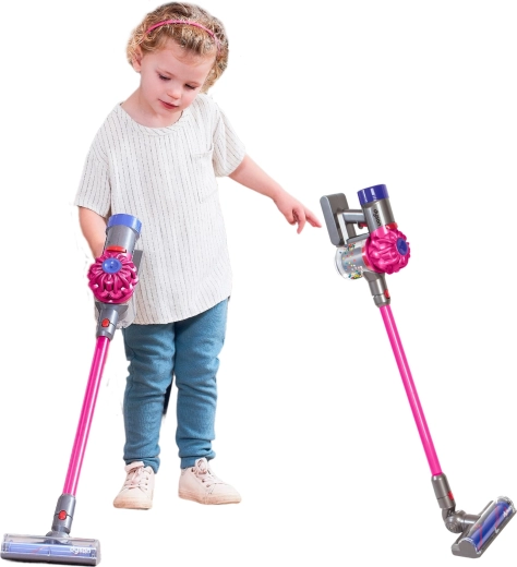 Παιδική σκούπα stick CASDON με άδεια DYSON σε ροζ χρώμα, προσφέρει ρεαλιστικό παιχνίδι καθαρισμού με ηχητικά εφέ και απαλή λειτουργία αναρρόφησης. Ελαφριά και ασφαλής για παιδιά από 3 ετών, με δοχείο συλλογής, αθόρυβη λειτουργία και οικολογική συσκευασία.