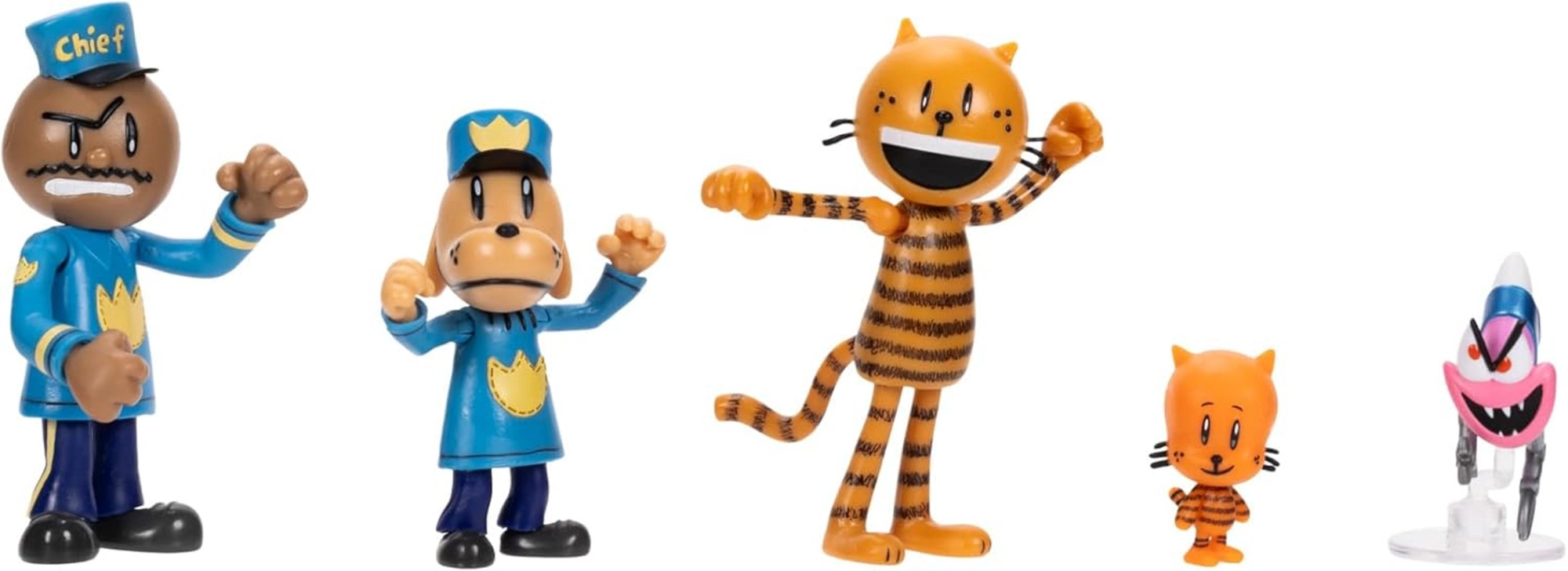 Το σετ περιλαμβάνει τους Chief, Dog Man, Petey, Lil’ Petey και Flippy – τον ιδανικό συνδυασμό ηρώων και κακού για να δημιουργήσετε τις δικές σας ιστορίες.