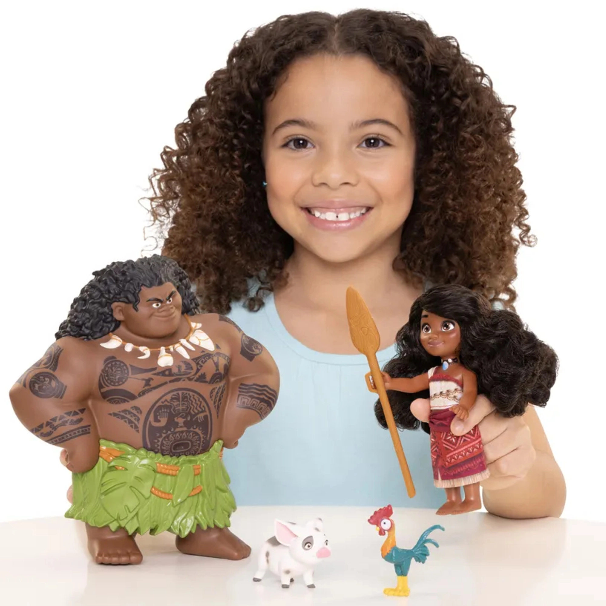- Πλήρες σετ χαρακτήρων: Vaiana, Maui, γουρουνάκι Pua και κόκορας Heihei.