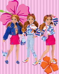 - Δύο πλήρη σύνολα mix & match: μπλουζάκι «Aloha» με τζιν, ροζ φουστίτσα με απαλή ζακετούλα και πορτοκαλί τοπ – όλα μπορούν να συνδυαστούν ελεύθερα.