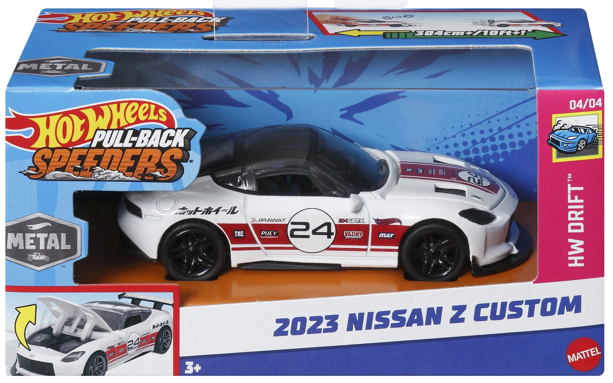 Ετοιμάσου για διασκέδαση σε υψηλές ταχύτητες με το μοντέλο HOT WHEELS 2023 Nissan Z custom από τη σειρά Pull‑Back Speeders σε κλίμακα 1:43. Χάρη στον μηχανισμό επαναφοράς (pull‑back) αρκεί να τραβήξεις το αυτοκινητάκι προς τα πίσω και να το αφήσεις – θα ξεκινήσει γρήγορα και δυναμικά. Το μεγαλύτερο μέγεθος, το λεπτομερές λευκό αμάξωμα και η ομαλή κίνηση με ελεύθερα περιστρεφόμενους τροχούς θα ενθουσιάσουν μικρούς και μεγάλους φίλους.