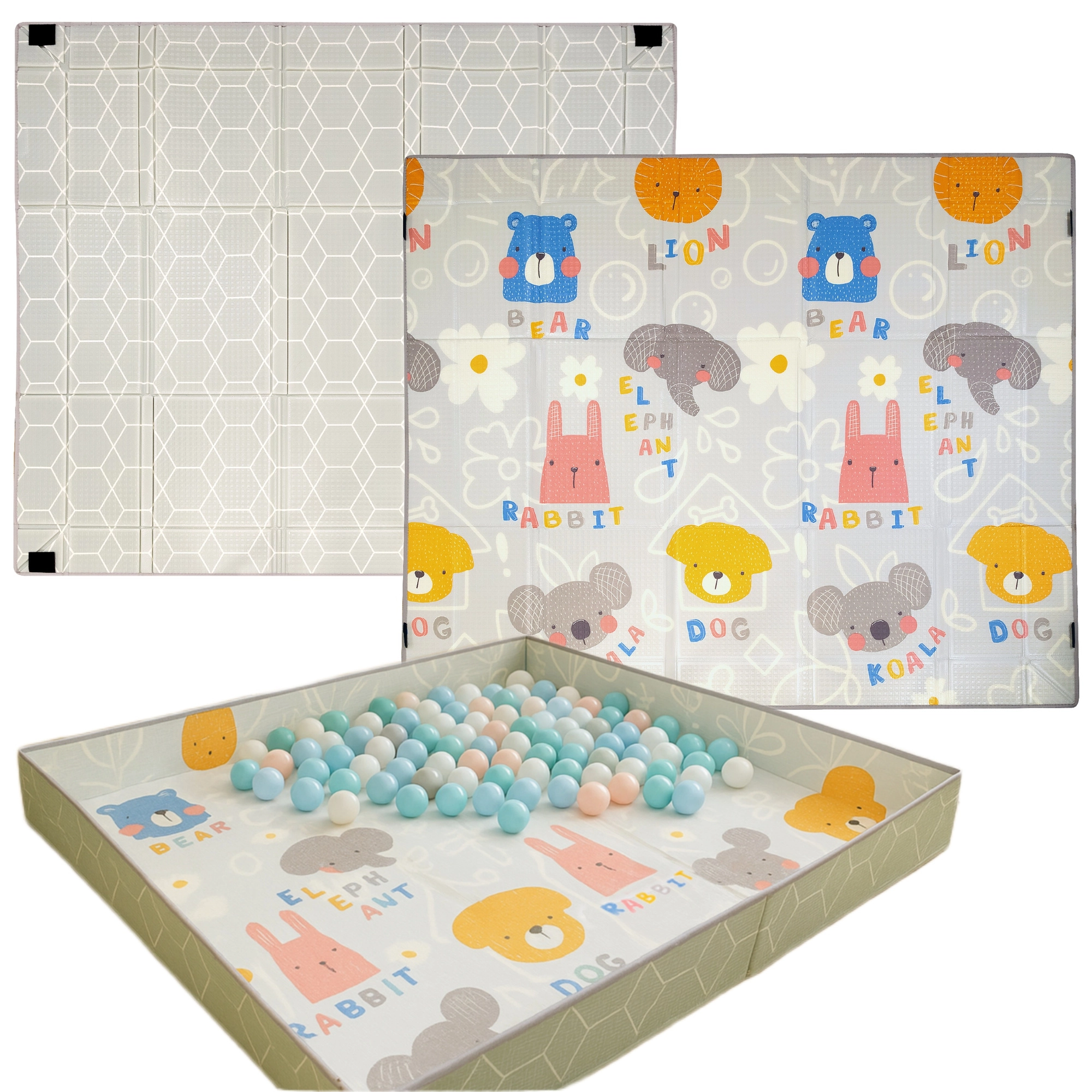 Μεγάλο και μαλακό αφρώδες χαλάκι από XPE που προσφέρει σε βρέφη και νήπια ασφάλεια και άνεση στο παιχνίδι, το μπουσούλημα και τα πρώτα βήματα. Είναι διπλής όψης, αναδιπλούμενο, αδιάβροχο και χάρη στα αυτοκόλλητα κουμπώματα μετατρέπεται εύκολα σε πάρκο ή μίνι πισίνα με μπαλάκια. Ταιριάζει άψογα σε παιδικό δωμάτιο, σαλόνι και κήπο και είναι χωρίς επιβλαβείς ουσίες σύμφωνα με τα πρότυπα EN71 και REACH.