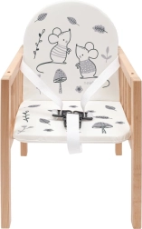 Οι 3-σημείων ζώνες ασφαλείας και η σταθερή κατασκευή από οξιά κρατούν το παιδί άνετα και με ασφάλεια καθισμένο.