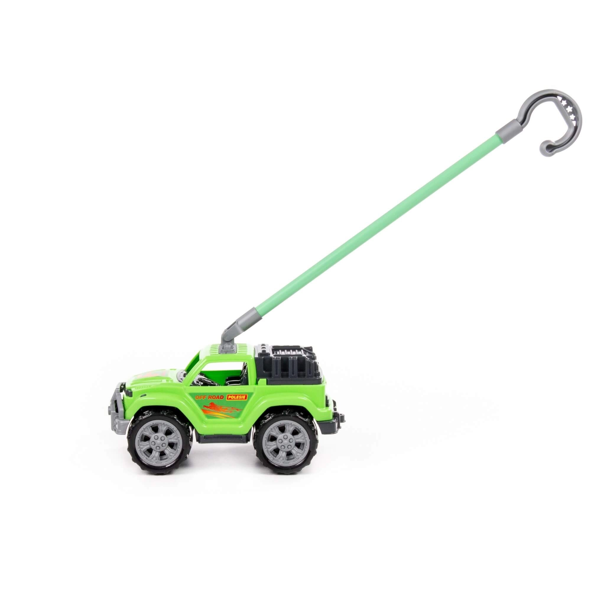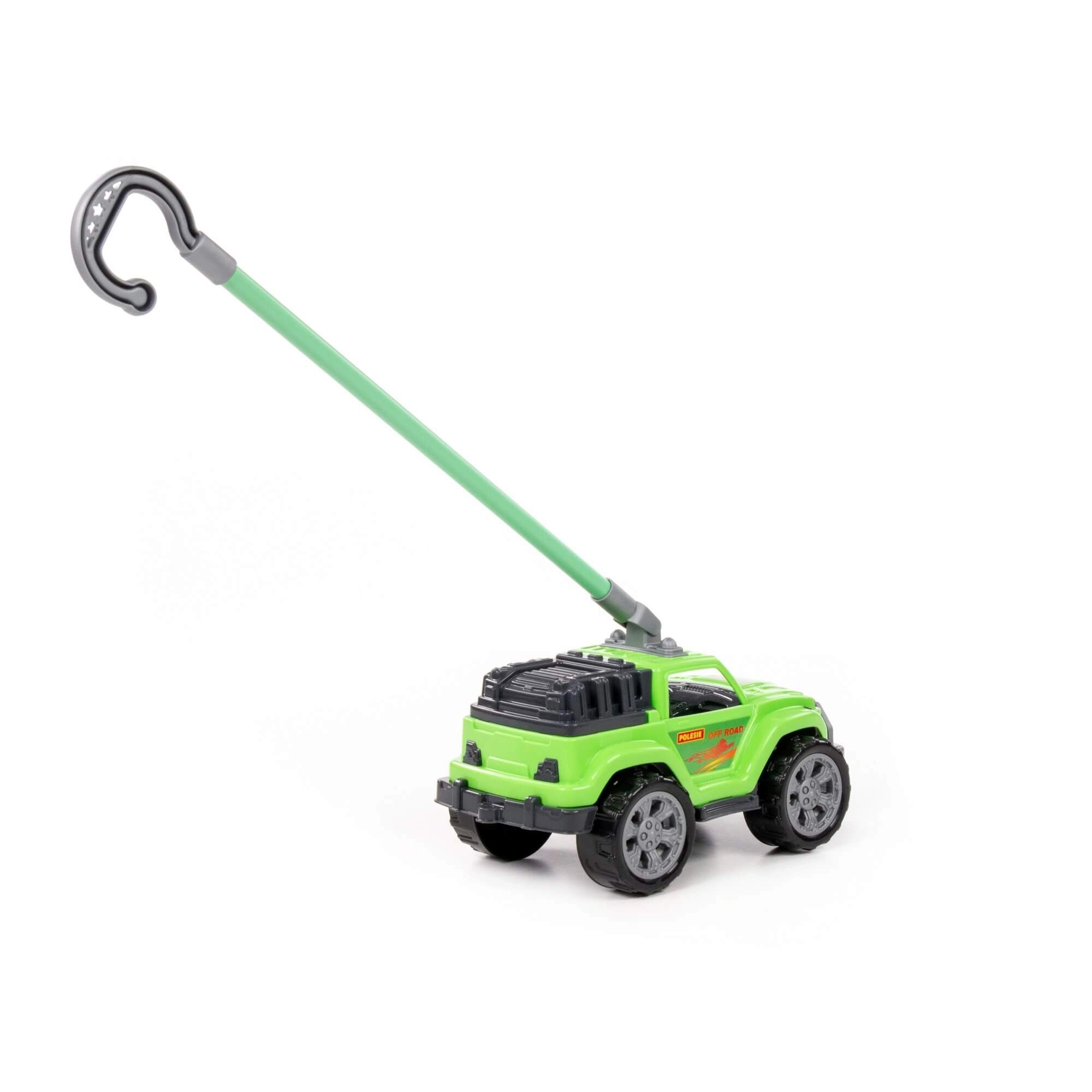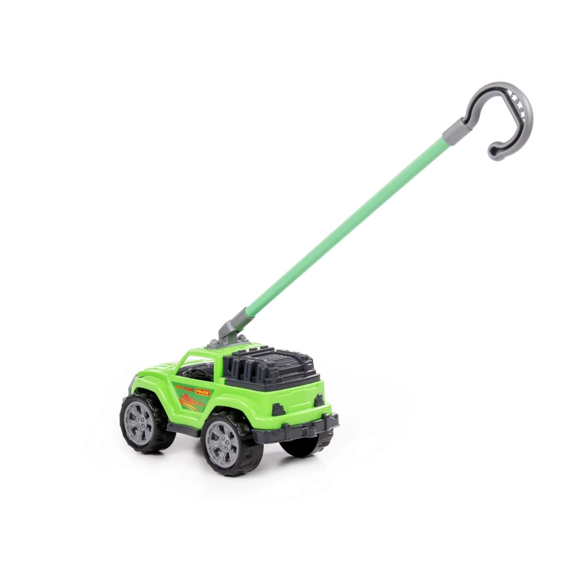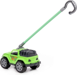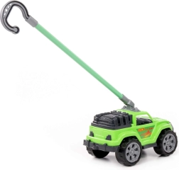 Πράσινο παιδικό αυτοκινητάκι ώθησης εμπνευσμένο από off-road οχήματα, με ανθεκτική κατασκευή, μεγάλους τροχούς για κίνηση σε διάφορες επιφάνειες και αποσπώμενη μακριά λαβή για εύκολη καθοδήγηση ή έλξη. Ιδανικό για ανάπτυξη κινητικών δεξιοτήτων και δημιουργικό παιχνίδι μέσα και έξω.
