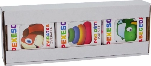 Πεξέσο είναι ένα από τα πιο αγαπημένα παιδικά παιχνίδια, που επιπλέον βοηθά στην ανάπτυξη των παιδιών. Αυτό το σετ περιλαμβάνει τρία διαφορετικά πεξέσο σε μεταλλικά κουτιά, με έμφαση στο αλφάβητο, στα ζωάκια με αγγλικά και στα παιχνίδια για παιδιά.
