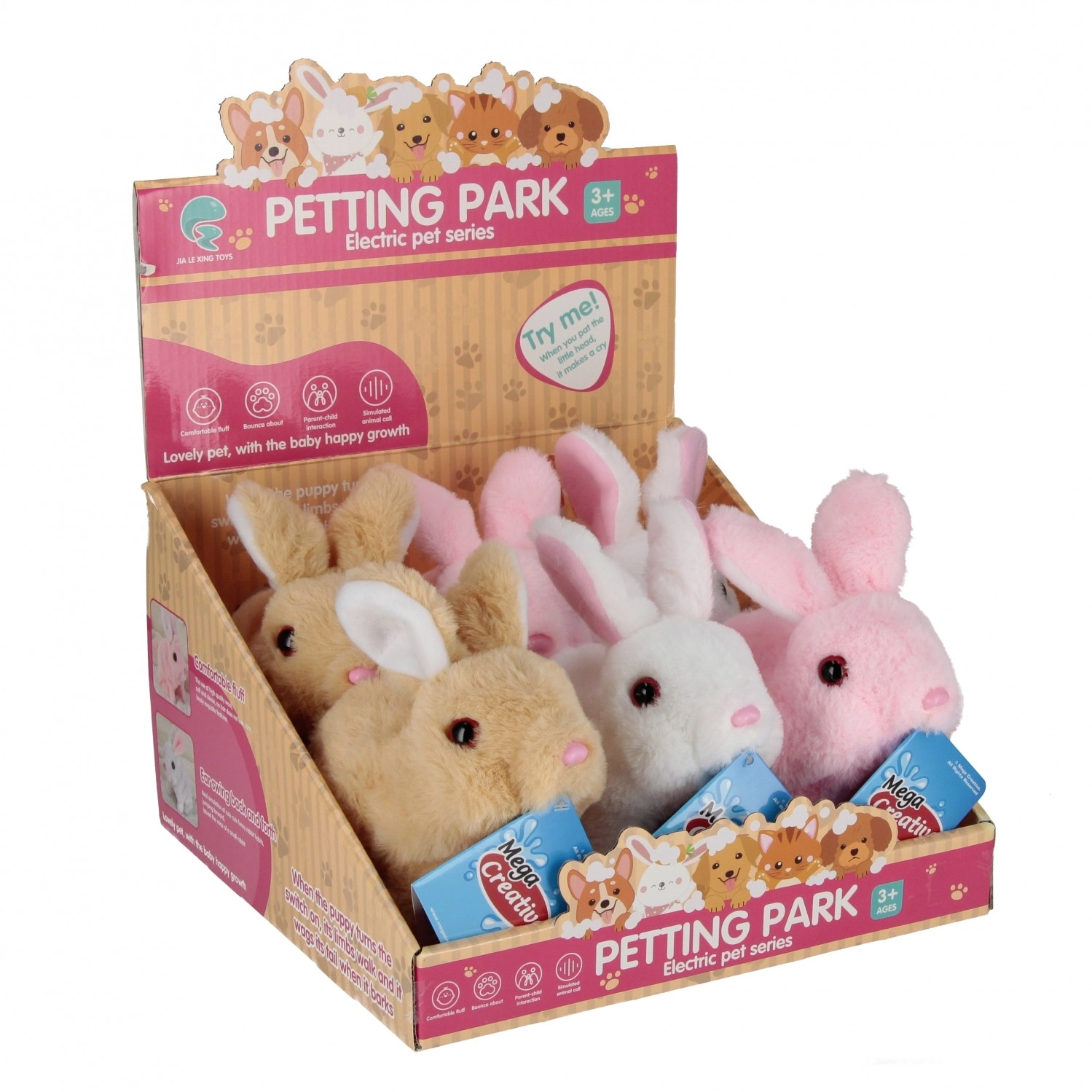 Το διαδραστικό λούτρινο κουνελάκι MEGA CREATIVE είναι εξαιρετικός σύντροφος για παιχνίδι και αγκαλιές. Χάρη στην απαλή, βελούδινη επιφάνειά του είναι ευχάριστο στο χέρι και η χαριτωμένη συμπεριφορά του – σφυρίγματα, κίνηση της μυτούλας και μικρά πηδηματάκια – θα χαρίσει χαμόγελα σε κάθε παιδικό πρόσωπο.