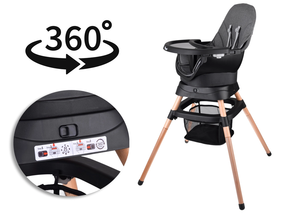 Το πολυλειτουργικό καρεκλάκι 6 σε 1 συνδυάζει άνεση, ασφάλεια και πρακτικότητα σε μία λύση. Χάρη στη μελετημένη αρθρωτή κατασκευή, μετατρέπεται εύκολα σε ψηλό καρεκλάκι φαγητού, χαμηλό καρεκλάκι με δίσκο, αυτόνομη πολυθρόνα, αντάπτορα για καρέκλα τραπεζαρίας, ψηλό σκαμπό ή χαμηλό σκαμνάκι. Το περιστρεφόμενο κάθισμα 360° με 8 θέσεις κλειδώματος εξασφαλίζει ιδανική ρύθμιση για τάισμα και παιχνίδι.