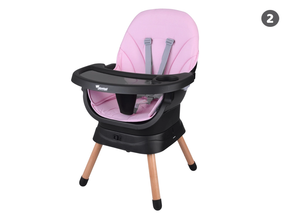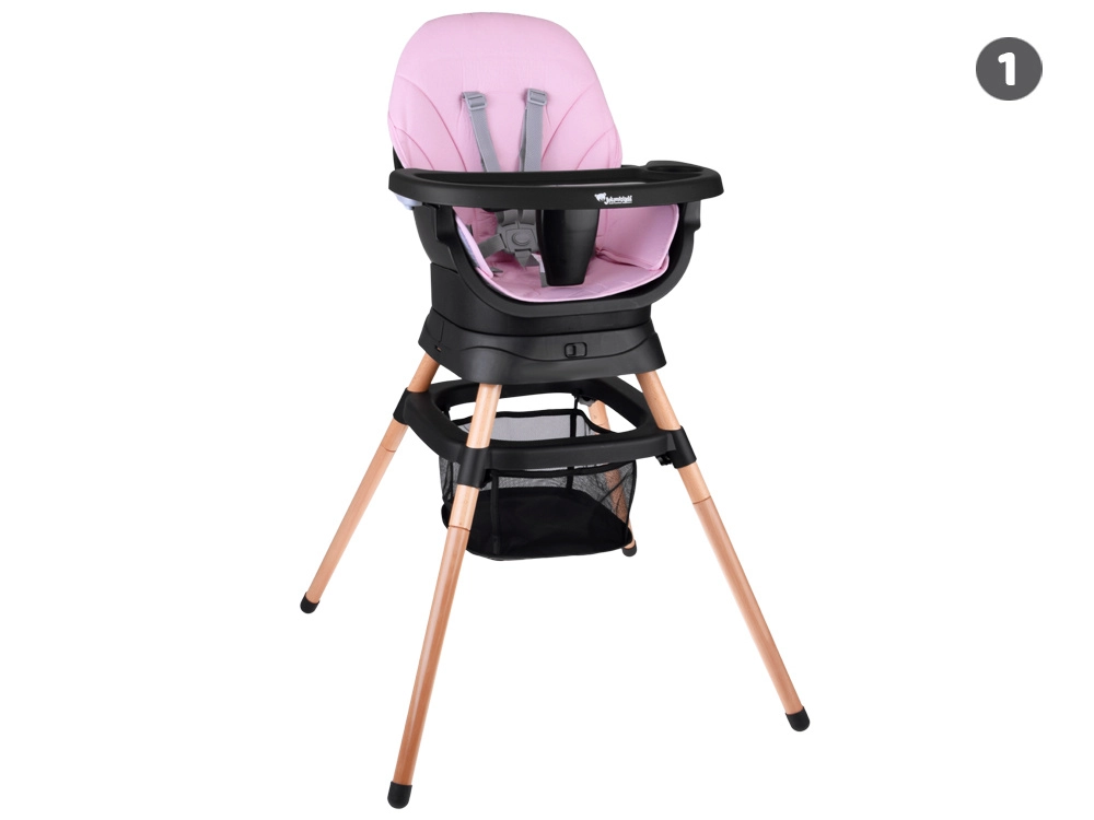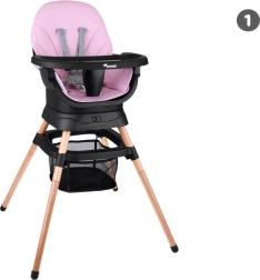 Το αρθρωτό σύστημα επιτρέπει γρήγορη μετατροπή χωρίς εργαλεία: ψηλό καρεκλάκι φαγητού, χαμηλό καρεκλάκι με δίσκο, ανεξάρτητο πολυθρονάκι, εξάρτημα για καρέκλα φαγητού με ιμάντες πρόσδεσης, ψηλό σκαμπό και χαμηλό σκαμνάκι. Ο χώρος κάτω από το καρεκλάκι συμπληρώνεται από ένα πρακτικό καλαθάκι για μικροαντικείμενα.
