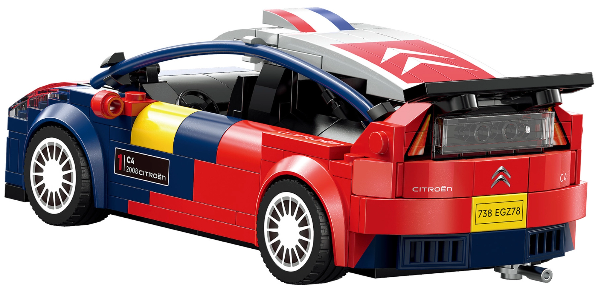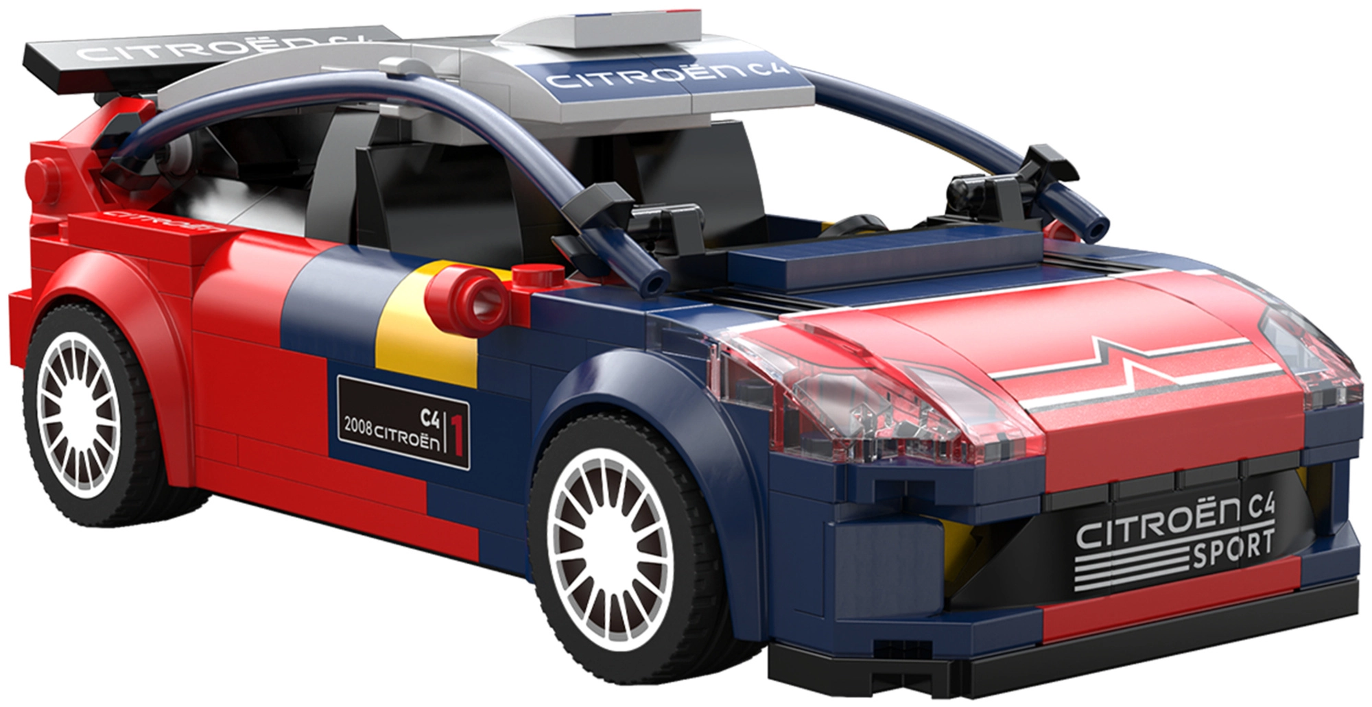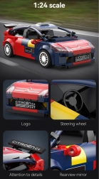 Το αμάξωμα σε αγωνιστικό μπλε‑κόκκινο σχέδιο με εκτυπώσεις και αεροδυναμικά στοιχεία υπογραμμίζει την αυθεντική όψη του πραγματικού WRC. Τα κομμάτια είναι συμβατά με άλλα σετ CaDA, ώστε να επεκτείνετε και να προσαρμόζετε ελεύθερα.