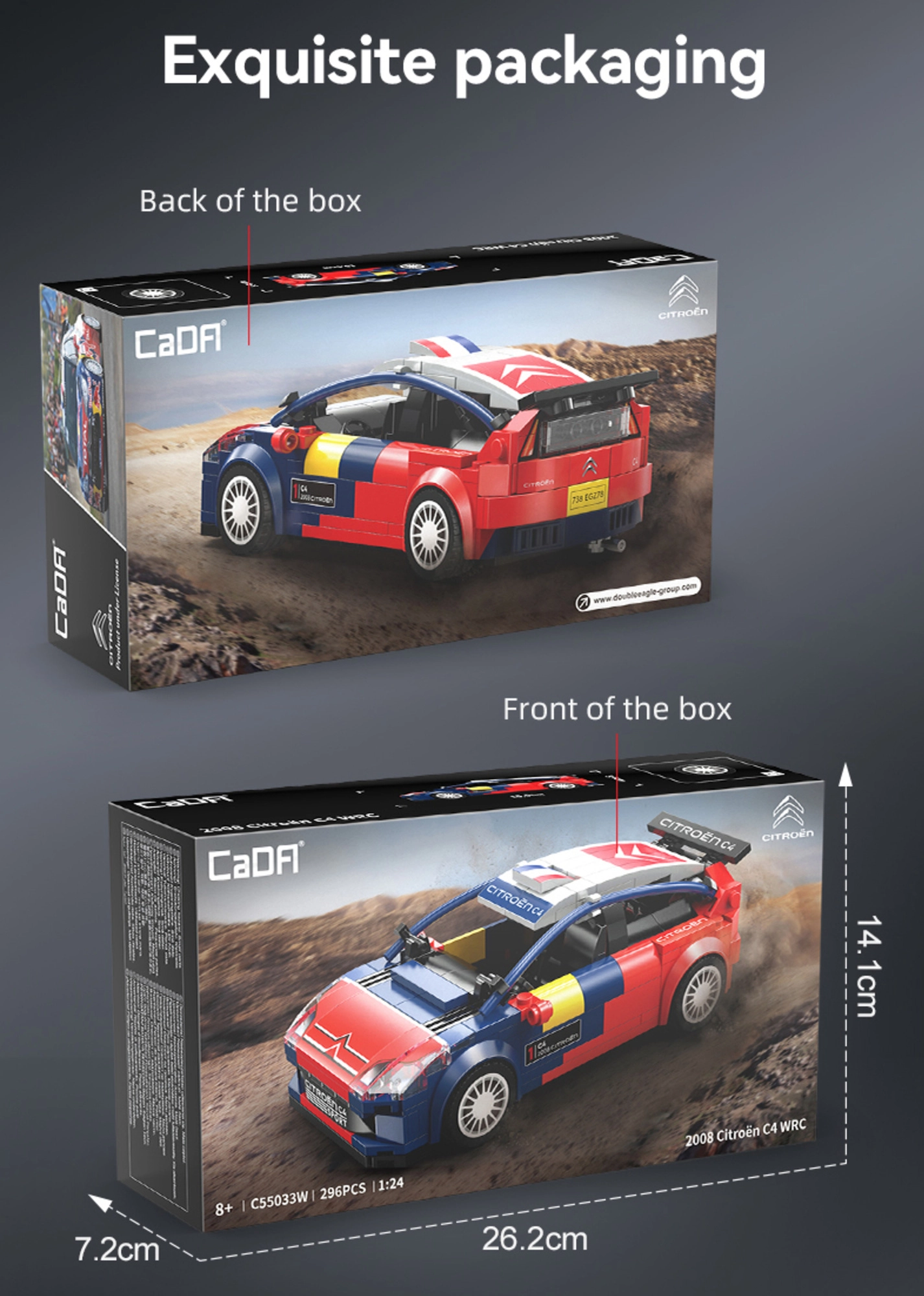 Απολαύστε προσεγμένη κατασκευή και εντυπωσιακή εμφάνιση του αδειοδοτημένου μοντέλου CITROËN C4 WRC. Το σετ CaDA προσφέρει ισορροπία ανάμεσα στην εύκολη συναρμολόγηση και την άριστη ποιότητα, δημιουργώντας ένα στατικό μοντέλο με ομαλή κύλιση, έτοιμο για προθήκη αλλά και παιχνιδιάρικες βόλτες σε επίπεδη επιφάνεια.