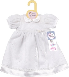 Αυτό το χαριτωμένο λευκό φόρεμα μεταμορφώνει κάθε κούκλα σε μικρή πριγκίπισσα. Το απαλό ύφασμα με διακοσμητικό μοτίβο, η διακριτική κορδελίτσα στη μέση και τα σατέν τελειώματα προσδίδουν διαχρονική κομψότητα. Χάρη στην προσεγμένη κατασκευή και τα ποιοτικά υλικά, το φόρεμα αντέχει σε πολλά παιχνίδια.