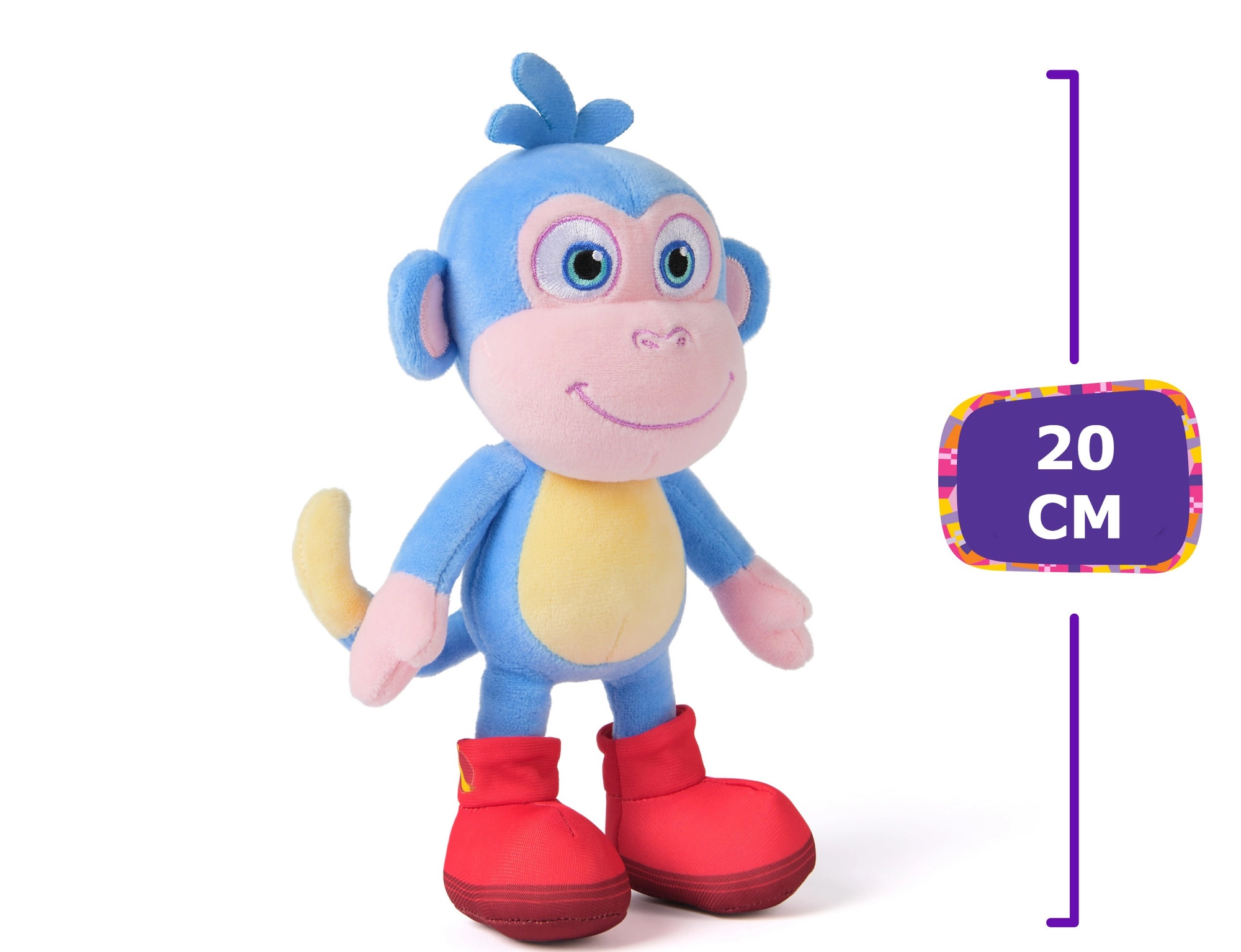 Ο Μπούτεκ φοράει τα χαρακτηριστικά του κόκκινα παπούτσια, έχει φιλικό χαμόγελο και ένα πρακτικό μέγεθος 20 cm που ταιριάζει στα παιδικά χέρια. Ενισχύει τη φαντασία και το παιχνίδι ρόλων με αγαπημένους ήρωες. Εξαιρετικό δώρο για τους φίλους της Ντόρα και για όλους όσοι αγαπούν τα μαλακά λούτρινα.