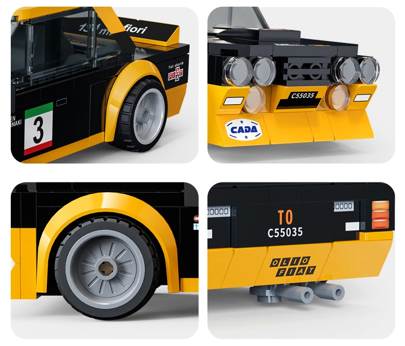 Απολαύστε την ακριβή συναρμολόγηση του θρύλου του WRC από το 1976. Το κατασκευαστικό σετ CADA αποτυπώνει πιστά τις αναλογίες και τις λεπτομέρειες του FIAT 131 Abarth, συμπεριλαμβανομένων των φαρδιών φτερών, της αεροτομής και των αγωνιστικών γραφικών. Χάρη στα εκτυπωμένα κομμάτια χωρίς αυτοκόλλητα, το μοντέλο δείχνει καθαρό και αντέχει στη συχνή χρήση.