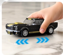 Το έτοιμο μοντέλο μετρά περίπου 16 × 7,2 × 4,8 cm, γι’ αυτό ταιριάζει τέλεια σε ράφι, ενώ οι περιστρεφόμενοι τροχοί το κάνουν απολαυστικό και στο παιχνίδι. Το σετ έρχεται σε κομψό κουτί δώρου, επομένως είναι εξαιρετική επιλογή-έκπληξη για φίλους των αυτοκινήτων και των σετ κατασκευής.