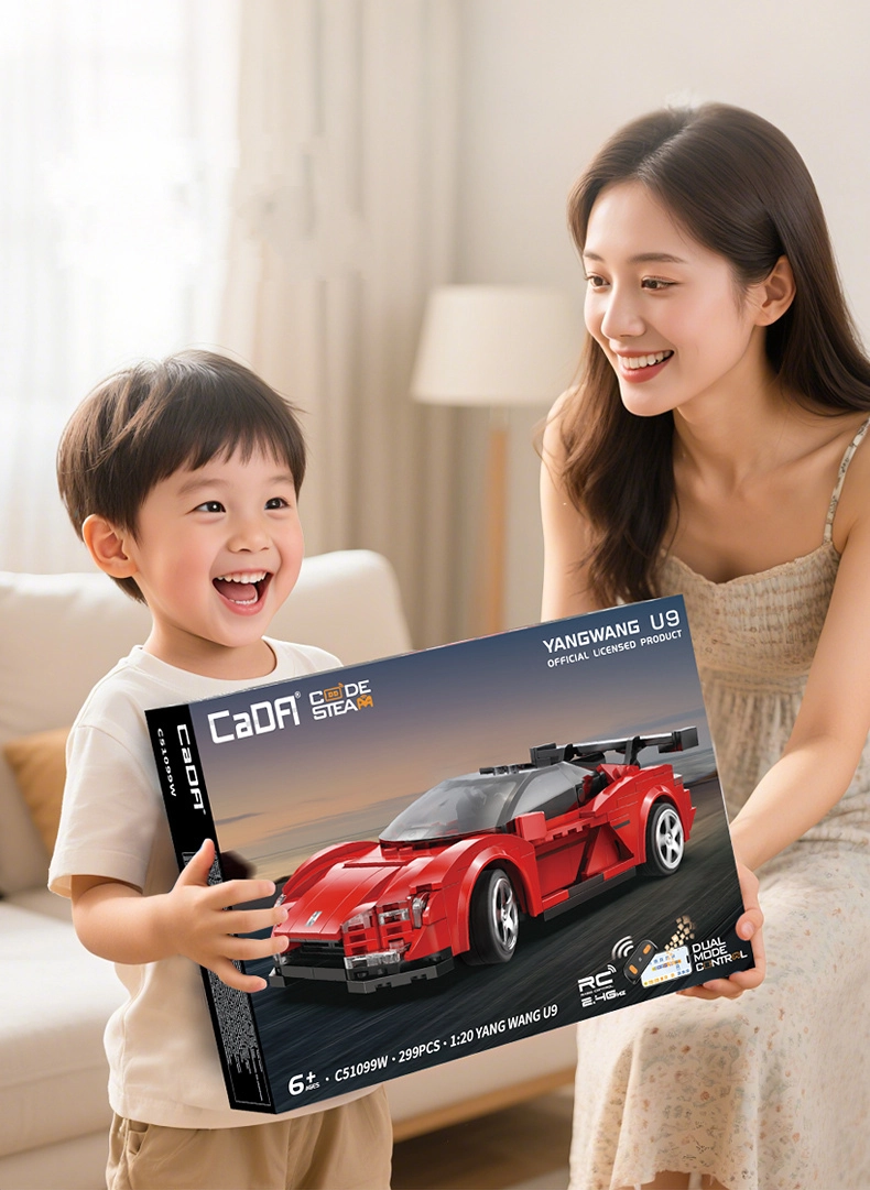 Απολαύστε τον συνδυασμό διασκεδαστικής συναρμολόγησης και σύγχρονου RC ελέγχου με το σετ CaDA YANGWANG U9. Μετά τη συναρμολόγηση αποκτάτε ένα λεπτομερές μοντέλο αγωνιστικού σε κλίμακα 1:20 με διαστάσεις 20 × 9 × 5,2 cm, που δείχνει υπέροχο στο ράφι και οδηγείται ακόμη καλύτερα. Το αμάξωμα σε κόκκινο χρώμα με εκτύπωση αντί για αυτοκόλλητα αντιγράφει πιστά την εμφάνιση ενός πραγματικού σπορ αυτοκινήτου.