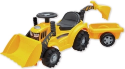 Αυτό το στιβαρό τρακτέρ με ρυμουλκούμενο χαρίζει στα παιδιά πολλές δυνατότητες παιχνιδιού και ανάπτυξης της κινητικότητας. Ο κουβάς μπουλντόζας μπορεί να αντικατασταθεί εύκολα με κουβά εκσκαφέα, ώστε οι μικροί χτίστες να μπορούν να φορτώνουν, να αδειάζουν και να μεταφέρουν παιχνίδια ανάλογα με τη διάθεση. Χάρη στο άνετο κάθισμα με κρυφή θήκη, τα μικροαντικείμενα είναι πάντα πρόχειρα.