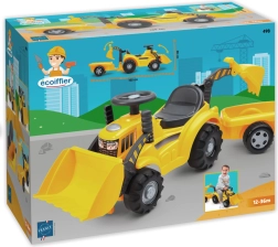 Παιδικό τρακτέρ της ECOIFFIER με κίτρινο ρυμουλκούμενο και εναλλάξιμο κουβά (μπουλντόζα/εκσκαφέας), ένα υπέροχο ποδηλατάκι ισορροπίας για τους μικρούς. Προσφέρει κάθισμα με θήκη αποθήκευσης, περιστρεφόμενους τροχούς και εύκολο χειρισμό του κουβά μέσω λαβών στο τιμόνι. Ιδανικό για παιδιά από 12 έως 36 μηνών και τέλειος σύντροφος για παιχνίδι στο σπίτι και στον κήπο.
