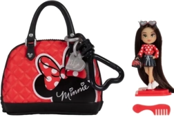 Περιλαμβάνεται μια μεγάλη ροζ τσάντα με θέμα τη Minnie, στην οποία χωράει η κούκλα και όλα τα μικροαντικείμενα. Χάρη στο χερούλι, τα παιδιά τη μεταφέρουν εύκολα παντού. Δεν λείπουν ο βάση στήριξης για έκθεση στη συλλογή και τα στυλάτα αξεσουάρ για ακόμα περισσότερη διασκέδαση.