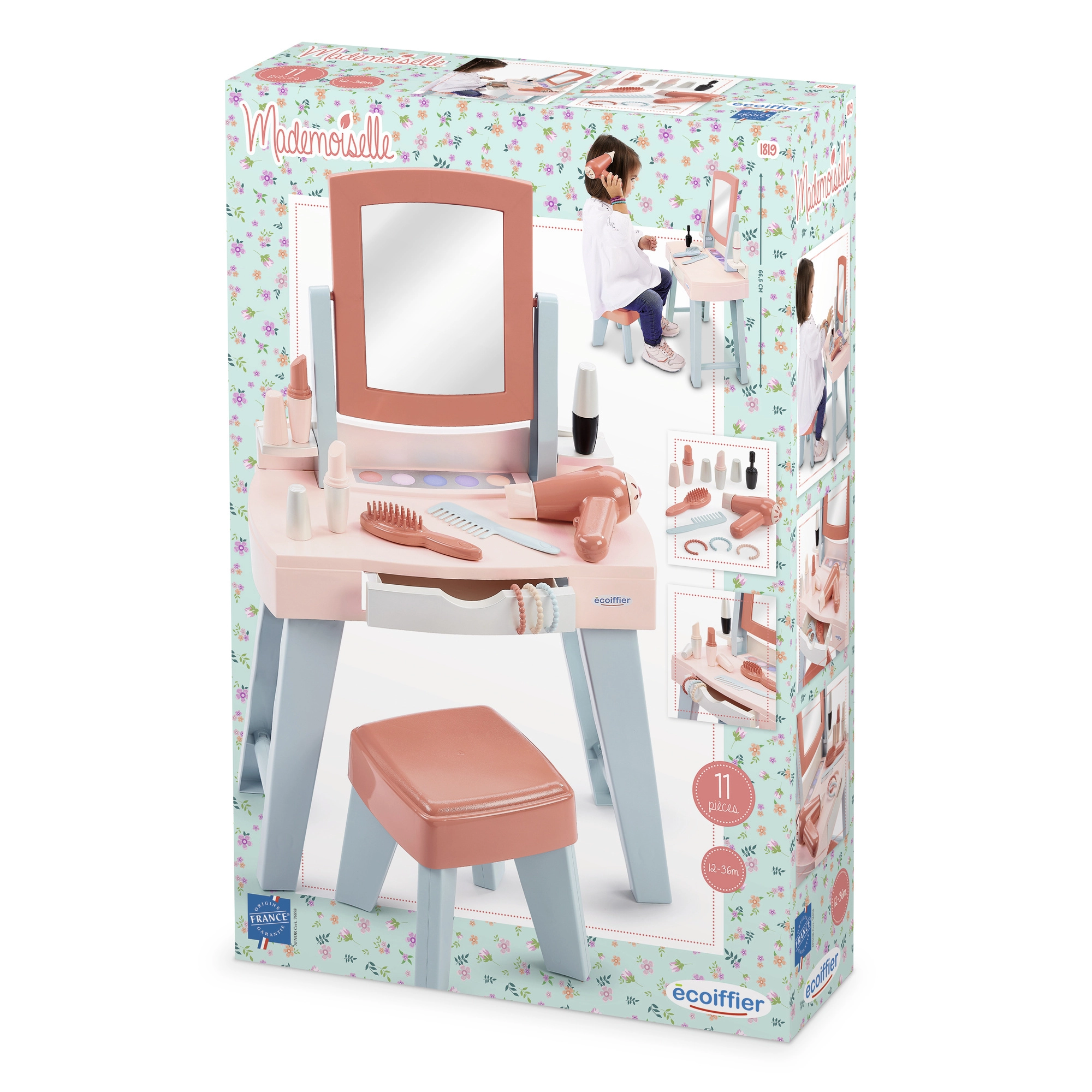 Η τουαλέτα Mademoiselle προσφέρει στα παιδιά τη δική τους γωνιά ομορφιάς με καθρέφτη, τραπεζάκι και άνετο κάθισμα. Το πλούσιο σετ αξεσουάρ – από χτένα και βούρτσα, μέχρι παιδικό σεσουάρ και «make-up» – ενισχύει το role-play και τη φαντασία, ενώ διδάσκει τάξη χάρη στο ενσωματωμένο συρτάρι.