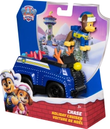 Λεπτομερές μπλε όχημα με χριστουγεννιάτικα στοιχεία και τροχούς που κινούνται ελεύθερα. Η φιγούρα CHASE με χειμωνιάτικο σκουφί κάθεται απευθείας στο κόκπιτ και είναι έτοιμη για δράση.