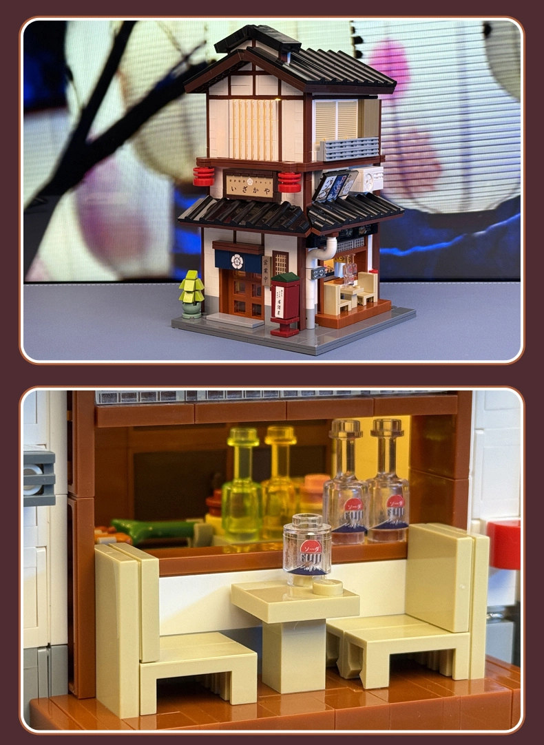 Ανακαλύψτε τη γοητεία της παραδοσιακής ιαπωνικής αρχιτεκτονικής με το μοναδικό σετ CaDA. Ρεαλιστικά χάρτινα φαναράκια, ξύλινες λεπτομέρειες, μπαρ και προσεγμένα στοιχεία εσωτερικού δημιουργούν αξεπέραστη ατμόσφαιρα. Χάρη στον ανοιγόμενο πλαϊνό τοίχο ρίχνετε εύκολα ματιά στο εσωτερικό, χωρίς να αποσυναρμολογείτε το μοντέλο.