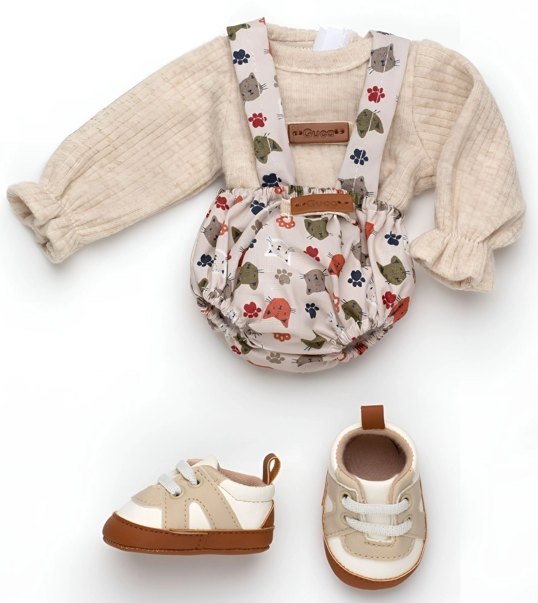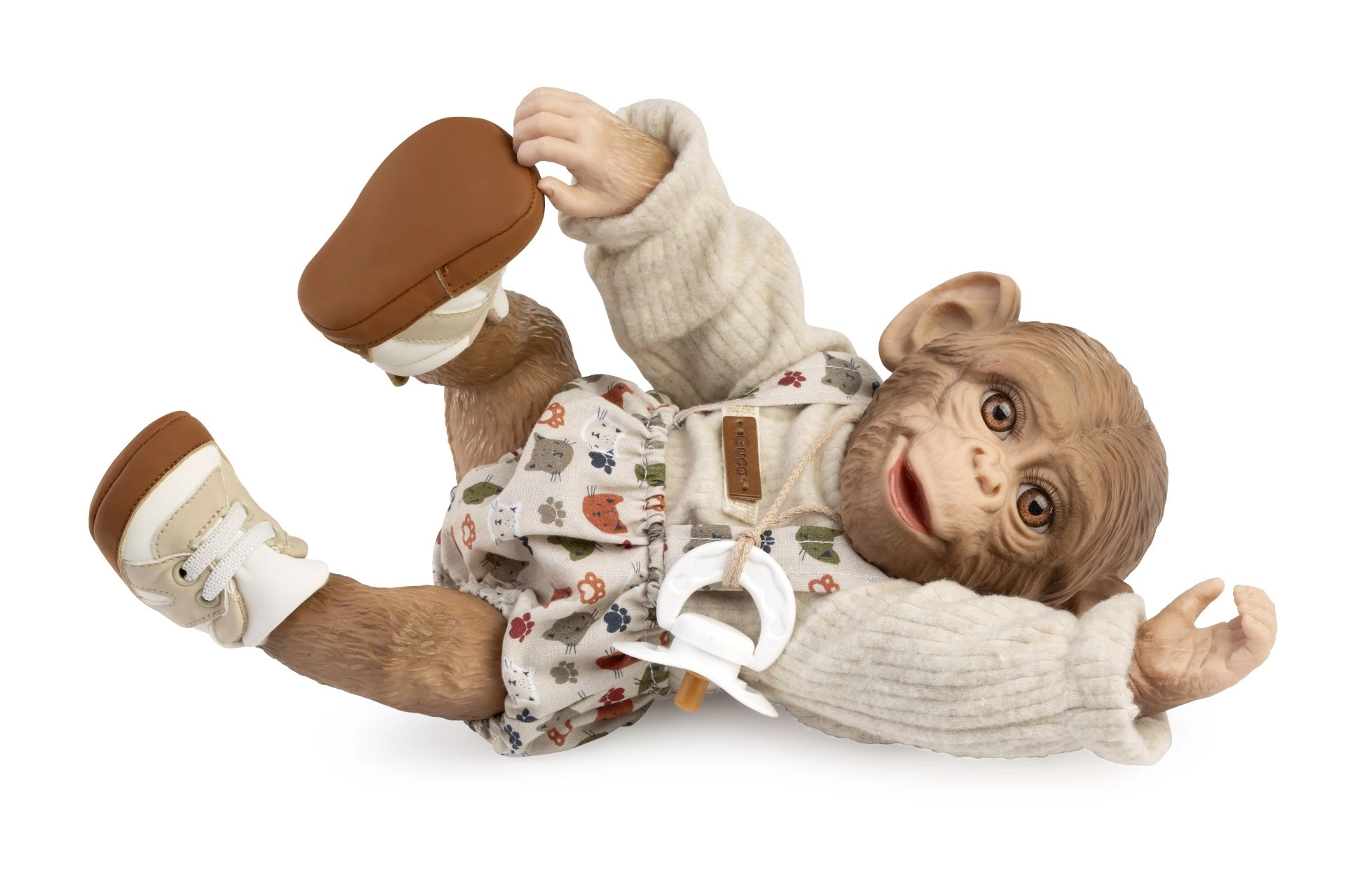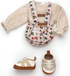 Χαρίστε στο αγαπημένο σας μωράκι-μαϊμουδάκι REBORN νέο στυλ. Αυτό το σετ 3 τεμαχίων προσφέρει δύο ταιριαστά κομμάτια ρουχισμού και μαλακά παπουτσάκια, που δίνουν ρεαλισμό και άνεση στο παιχνίδι. Χάρη στη χειροποίητη κατασκευή στην Ισπανία, μπορείτε να βασίζεστε στην προσεγμένη ραφή και τα ποιοτικά υλικά.