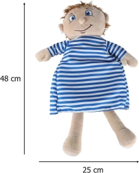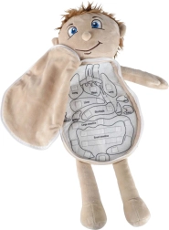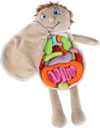 Αυτή η εκπαιδευτική λούτρινη κούκλα με ανοιγόμενη κοιλίτσα βοηθά τα παιδιά να κατανοήσουν τη βασική ανθρώπινη ανατομία με παιχνιδιάρικο και παραστατικό τρόπο. Η κοιλίτσα ανοίγει εύκολα με ασφαλές φερμουάρ και αποκαλύπτει πολύχρωμα, μαλακά όργανα, τα οποία είναι στερεωμένα με βέλκρο για εύκολη αφαίρεση και επανατοποθέτηση. Η κούκλα είναι κατασκευασμένη από ευχάριστο πολυέστερ και συνοδεύεται από εύκολα αποσπώμενα ρούχα που δένουν στην πλάτη.
