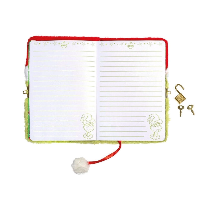 Κάντε δώρο στον εαυτό σας ένα στιλάτο σημειωματάριο με λούτρινο εξώφυλλο και έντονο μοτίβο GRINCH. Χάρη στη μορφή A5 χωράει άνετα σε σακίδιο ή τσάντα, ώστε να το έχετε πάντα μαζί σας. Η κλειδαριά με δύο κλειδιά προστατεύει τις σημειώσεις, το ημερολόγιο και τα σκίτσα σας.