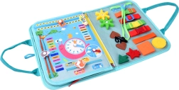 Ανακαλύψτε ένα έξυπνο εκπαιδευτικό παιχνίδι εμπνευσμένο από τη μέθοδο Montessori. Το μαλακό τσόχινο βιβλίο με κλείσιμο με λάστιχο και κουμπί κρύβει θεματικές σελίδες γεμάτες κινητά στοιχεία: ρολόι με δείκτες, φερμουάρ, αγκράφες, κορδόνια, γρανάζια, συρόμενα μέρη, σχήματα και αριθμούς. Το παιδί εξασκεί φυσικά τη λεπτή κινητικότητα, τη συγκέντρωση και την αυτονομία – χωρίς οθόνες και οπουδήποτε στο δρόμο.