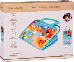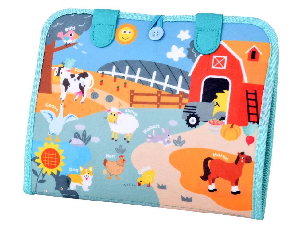 Κάθε σελίδα προσφέρει διαφορετικό τύπο δραστηριότητας: από ντύσιμο και εξάσκηση των χεριών, έως συναρμολόγηση παζλ και μάθηση αριθμών, μέχρι ημερολόγιο, καιρό και ώρα. Το σετ περιλαμβάνει επίσης αριθμούς και μαθηματικά σύμβολα για τις πρώτες ασκήσεις. Οι πολύχρωμες εικονογραφήσεις με φάρμα και ζωάκια κεντρίζουν το ενδιαφέρον και υποστηρίζουν τη διάκριση χρωμάτων και σχημάτων.