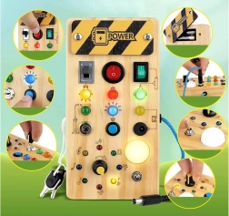 - Ξύλινη μοντεσσοριανή πλακέτα χειρισμού/δραστηριοτήτων με φωτεινά εφέ LED