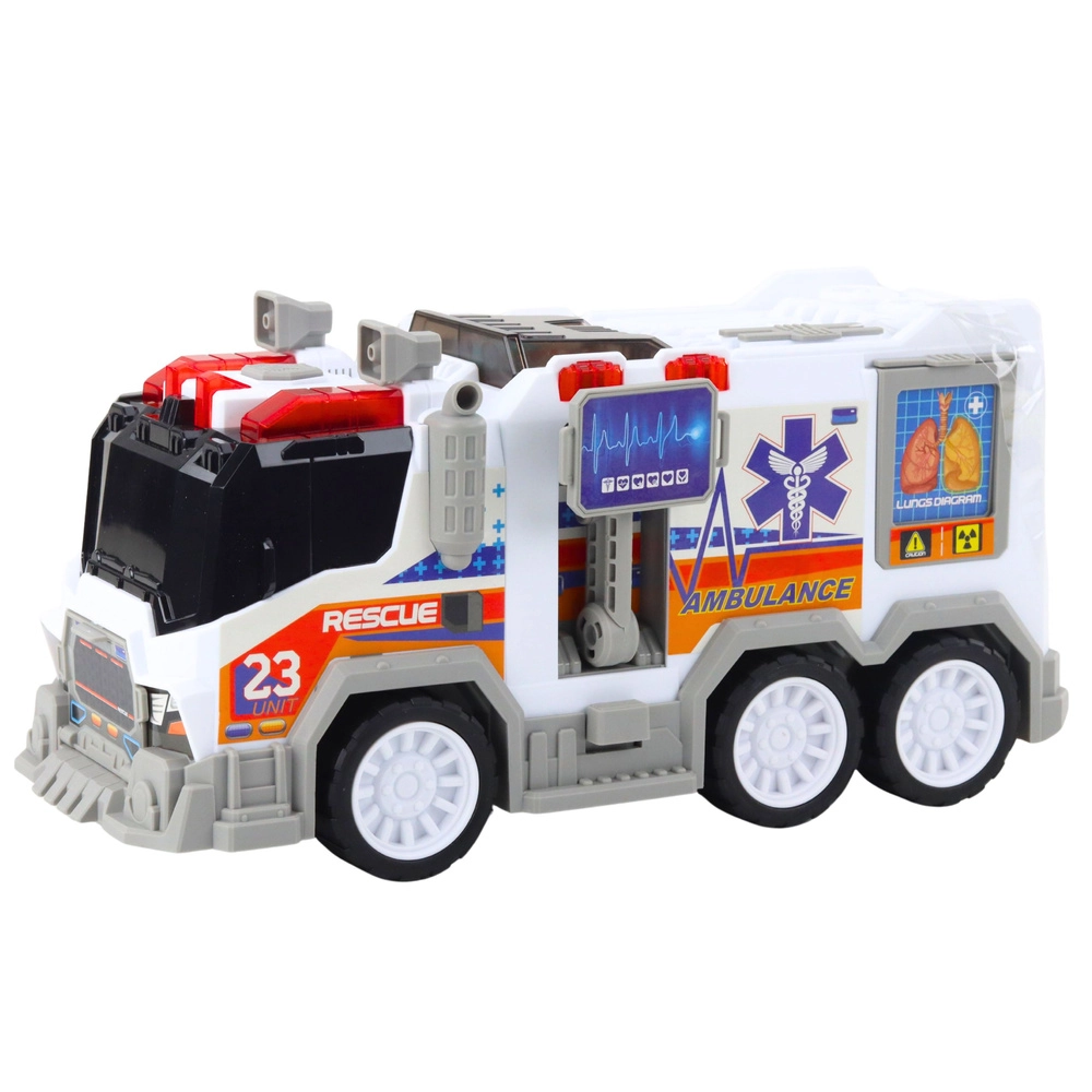 Ρεαλιστικό δημοτικό ασθενοφόρο για παιδιά που φέρνει τον κόσμο των διασωστών κατευθείαν στο δωμάτιο. Προσφέρει φωτεινά και ηχητικά εφέ, κίνηση με αδράνεια (push-and-go) και ανοιγόμενες πόρτες και θυρίδες για ακόμη πιο αυθεντικό παιχνίδι. Κατασκευασμένο από ανθεκτικό και ασφαλές πλαστικό, ενισχύει τη φαντασία και τη λεπτή κινητικότητα.