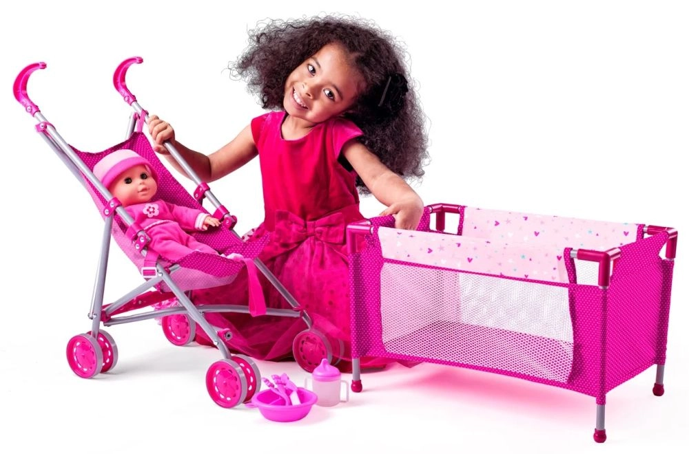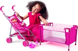 Αυτό το όμορφο σετ περιλαμβάνει όλα όσα χρειάζεται το παιδί σας για να φροντίσει την αγαπημένη του κούκλα. Περιλαμβάνεται αθλητικό καρότσι με μεταλλική κατασκευή, εξαιρετικά πρακτικό χάρη στον εύκολο χειρισμό. Επιπλέον, περιλαμβάνεται κρεβατάκι ταξιδιού, ιδανικό για παιχνίδι στο σπίτι και σε εξωτερικούς χώρους.
