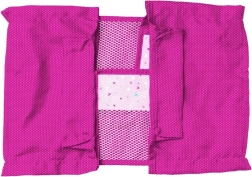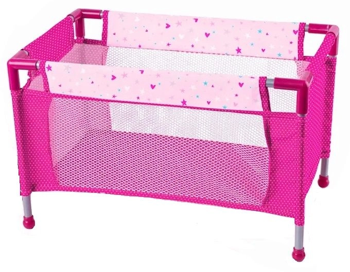 Το ροζ κρεβατάκι με μεταλλικό πλαίσιο είναι ιδανικό για παιχνίδι στο σπίτι και έξω. Είναι φορητό και ελαφρύ.