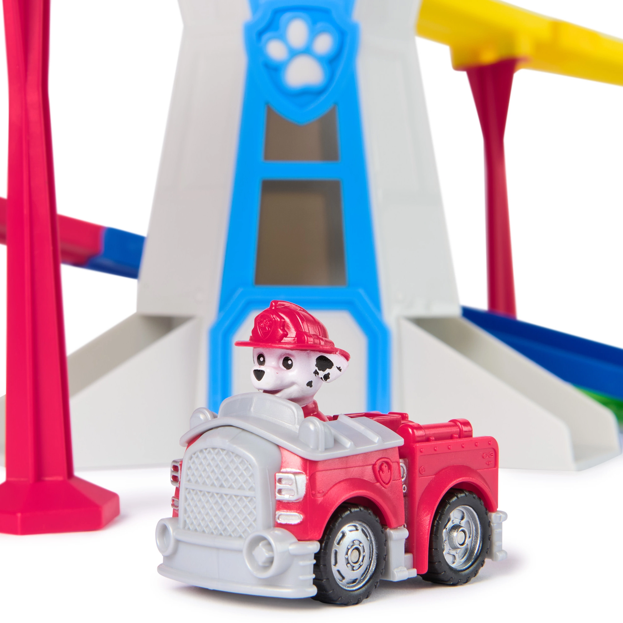 Αυτό το ανθεκτικό και πολύχρωμο σετ παιχνιδιού, εμπνευσμένο από τον κόσμο της PAW PATROL, μεταφέρει τα παιδιά στο Adventure Bay. Ο πύργος με ρεαλιστικές λεπτομέρειες και δύο φαρδιές ράμπες επιτρέπει να ρίχνετε τα οχήματα κατευθείαν στη δράση – απλώς τοποθετήστε το αυτοκινητάκι στην κορυφή και ξεκινήστε την αποστολή διάσωσης.