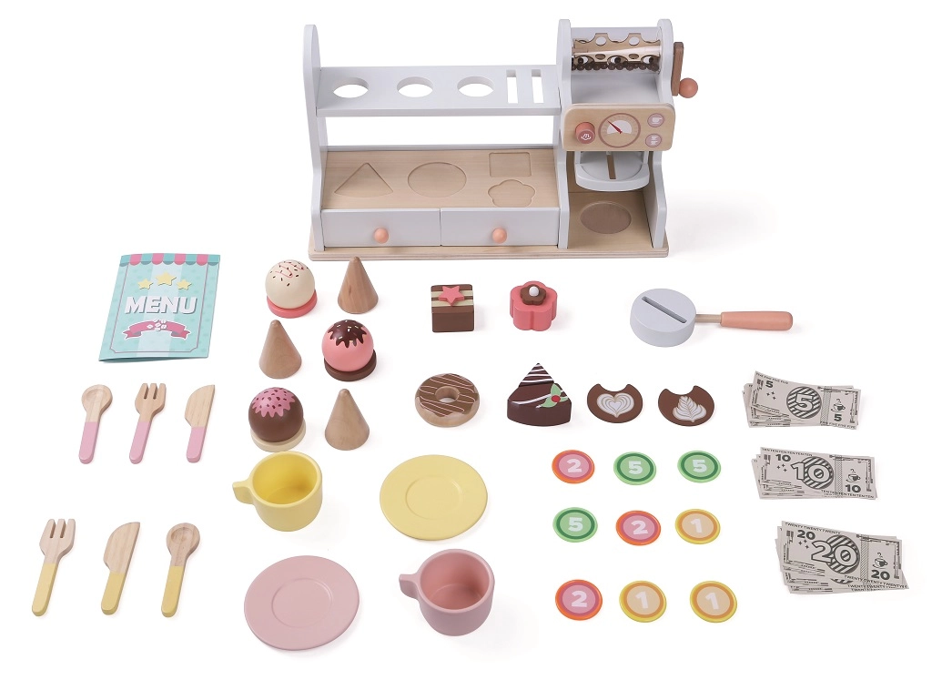 - Ξύλινο σετ παιχνιδιού ρόλων – ζαχαροπλαστείο και καφετέρια 2 σε 1